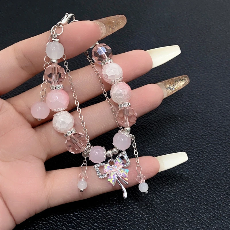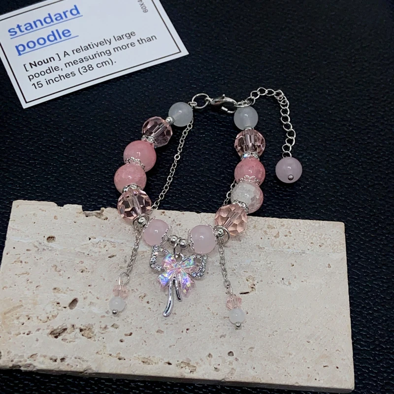 Fashion Butterfly Beaded Bracelets For Women Girls Imitation Jade Bohemian Crystal Charm Elastic Rope Bracelet Hand Jewelry