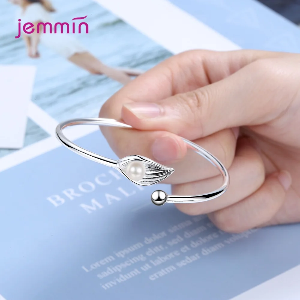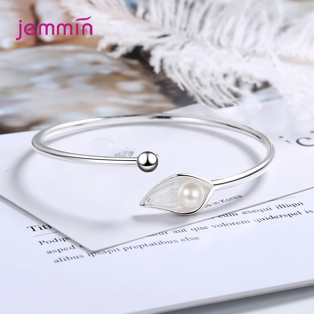Fashion Cute Leaf And Pearls Chain Bracelets for Women 925 Sterling Silver Adjustbale Cuff Bracelet Bangle Jewelry