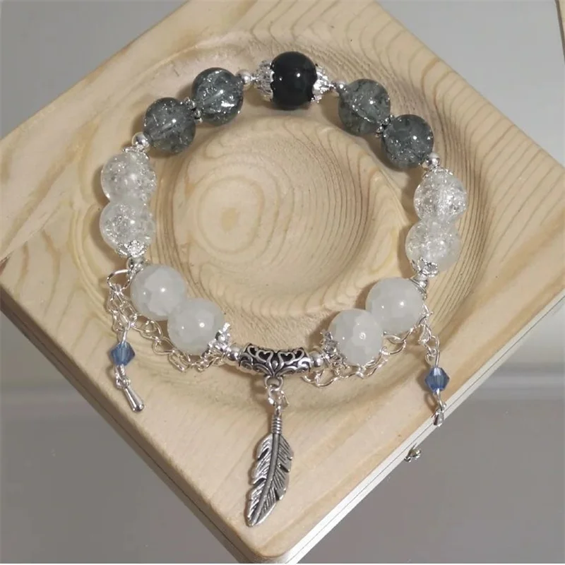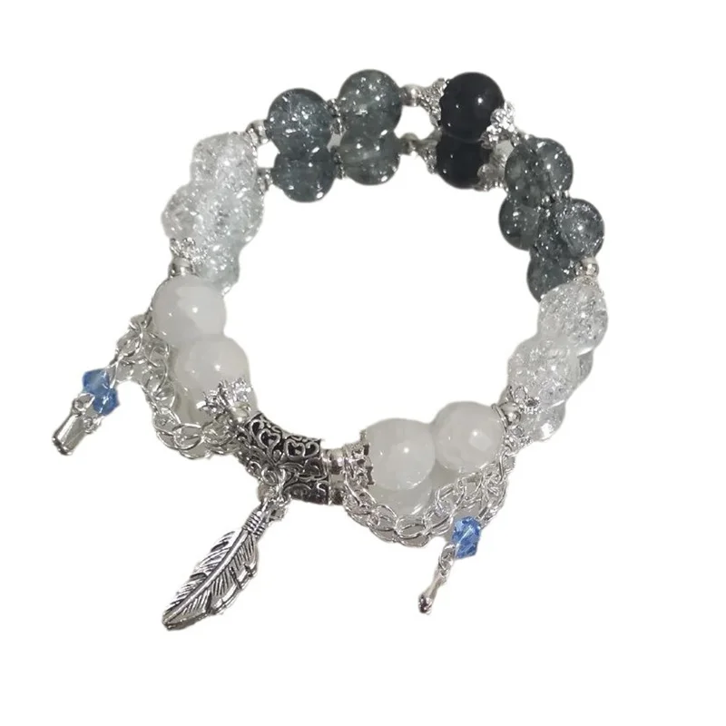 Fashion Design Gradient Crystal Beads Bracelet for Women Girls Vintage Butterfly Feather Maple Leaf Tassel Bracelet Jewelry Gift
