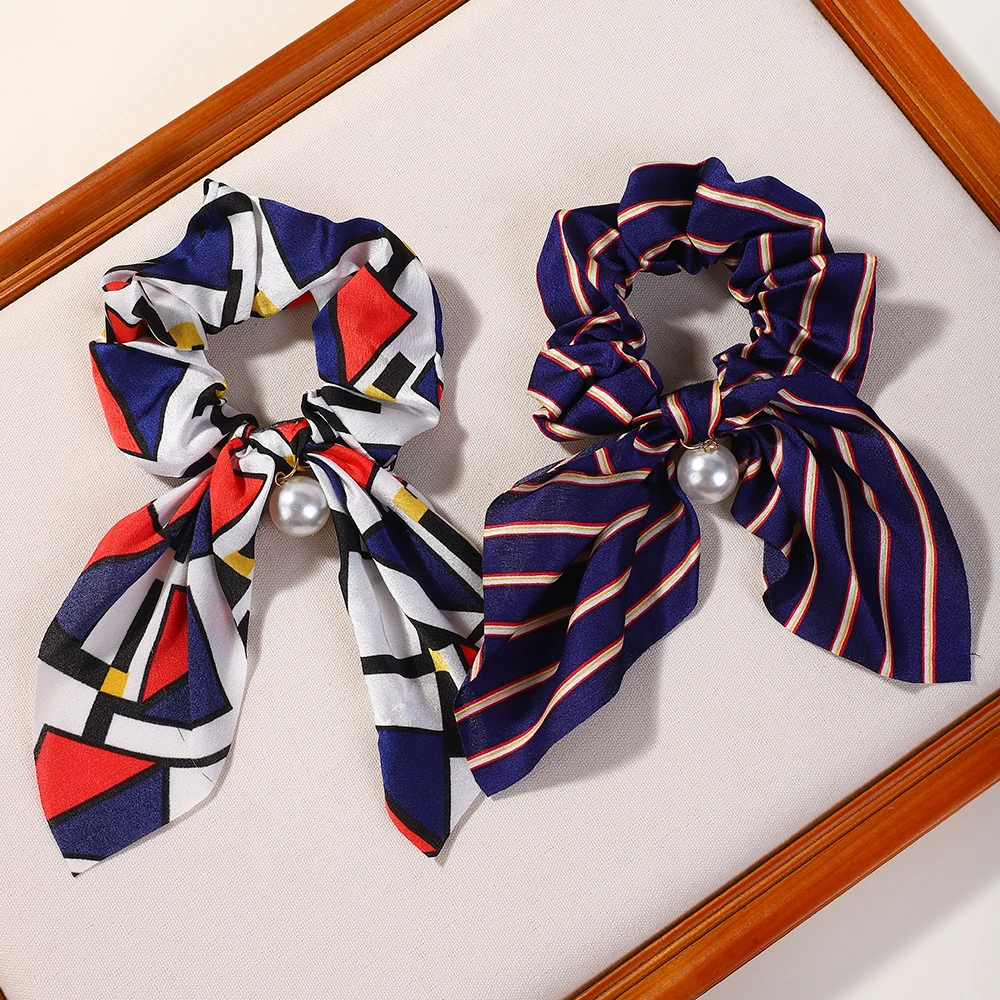 Fashion Vintage Solid Chiffon Velvet Bow Hair Ribbon Scrunchie for Women Girls Long Elastic Hair Tie Headwear Hair Accessories