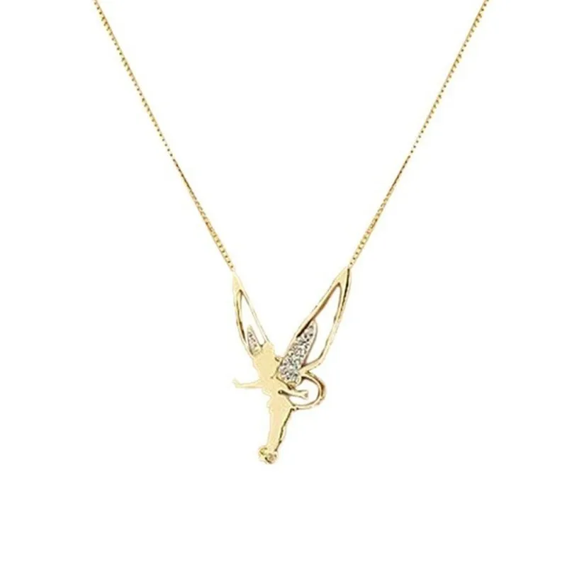 Fashion Women Necklace Flower Fairy Elf Necklace For Women Girl Cute Angel Wings Believe Crystal Pendant Necklaces Jewelry Gift