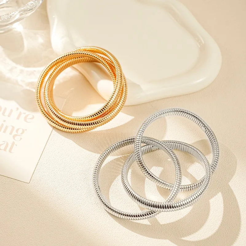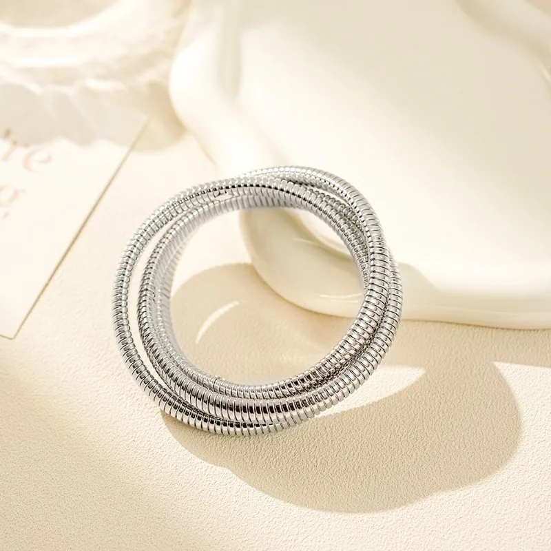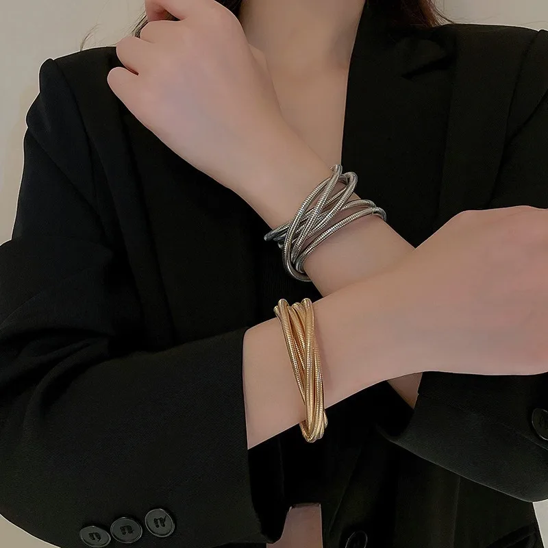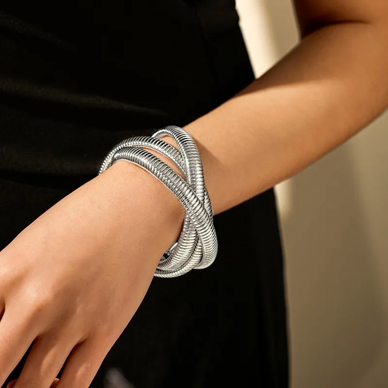 Fashionable Retro Exaggerated Three-layer Wide Edge Elastic Bracelet, Personalized Cool Style Bracelet, Hand Jewelry for Women