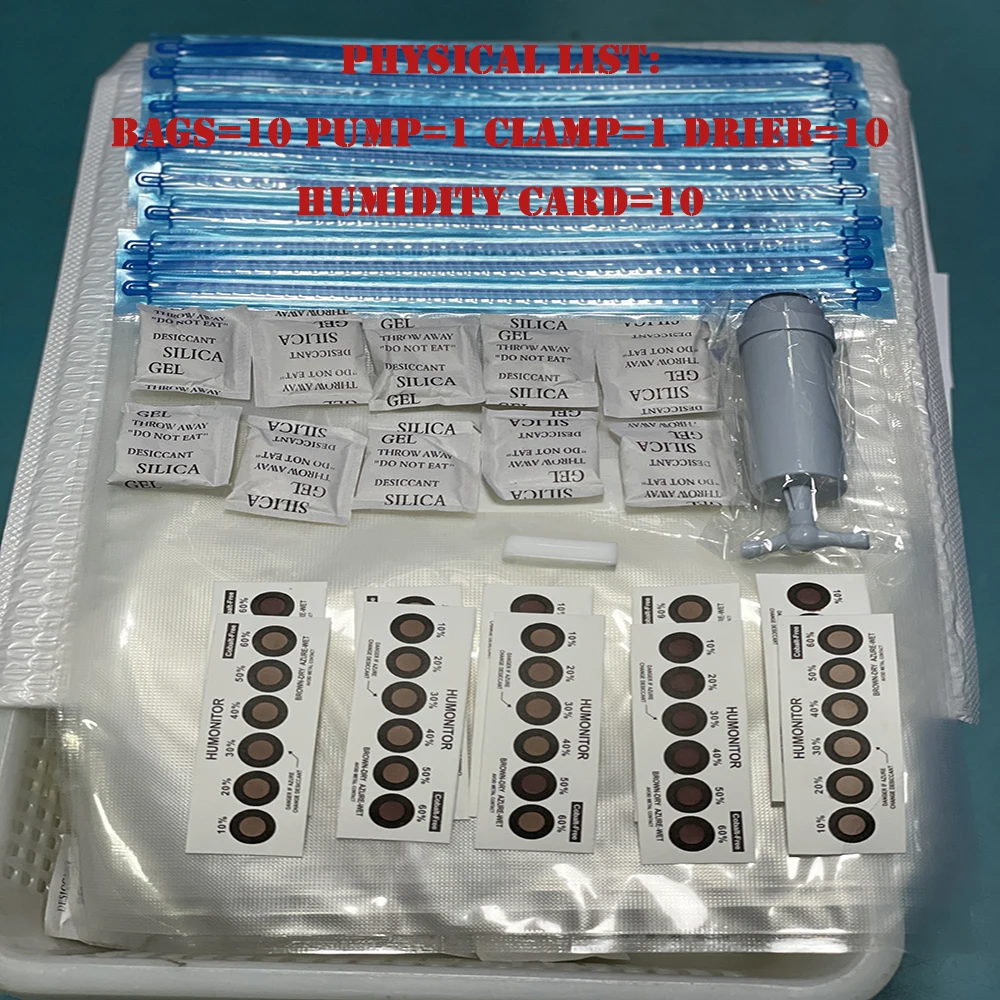 KIT 11:Bags*10+Clamp*1+Pump*1+humidity card*10+Drier*10