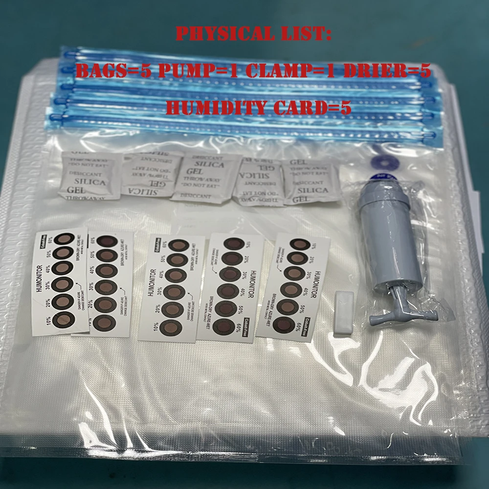 KIT 10:Bags*5+Clamp*1+Pump*1+humidity card*5+Drier*5