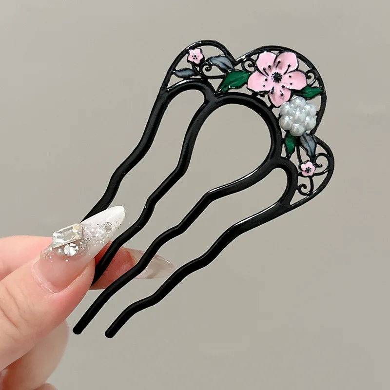Flower Pattern U Shaped Hairpins Fashion Creative 4 Prong Hair Sticks Metal Hair Fork Hair Accessories