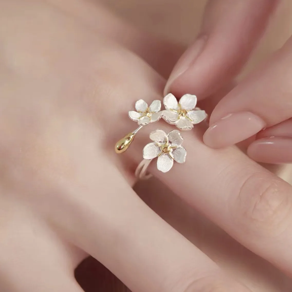 Floral Fairy Gold and Silver Ring (High Quality Enamel)