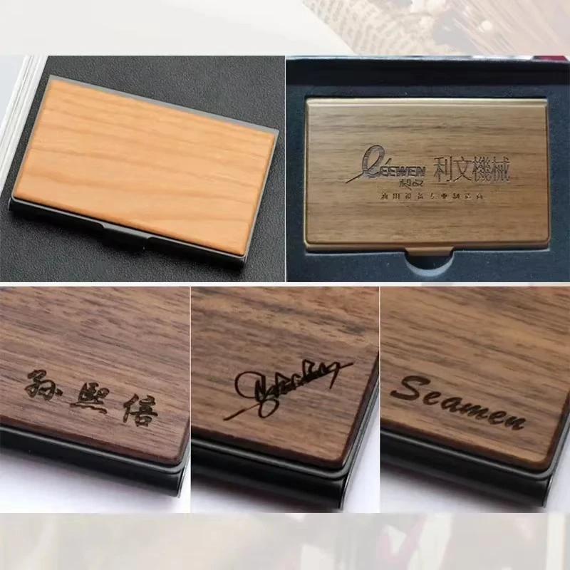 Free Customized Engraving Wood Business Card Holder Pocket Black Walnut Solid Wooden Clip Personalized Cardcase Activities Gifts