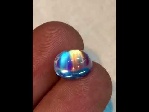 Presenting an incredible, gem-grade Rainbow Moonstone in an oval shape. This rare and eye-clean gemstone is distinguished by its high-domed cut and an unbelievably vibrant flash of color. It's a top-quality piece, perfect for a high-end jewelry design or a prized addition to a collector's showcase.