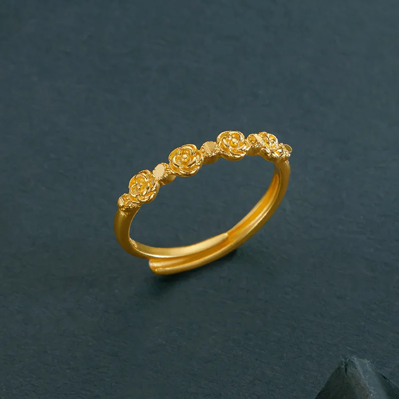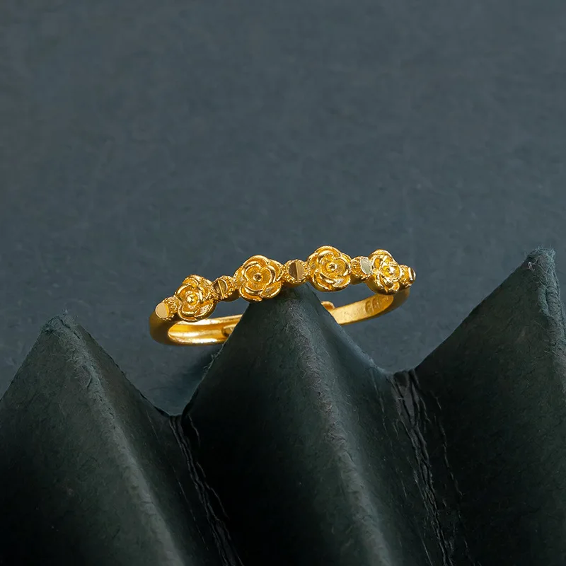 Genuine 18 K Gold Color Romantic Retro Rose Shape Ring for Women Bride Birthday Wedding Engagement Jewelry Gifts
