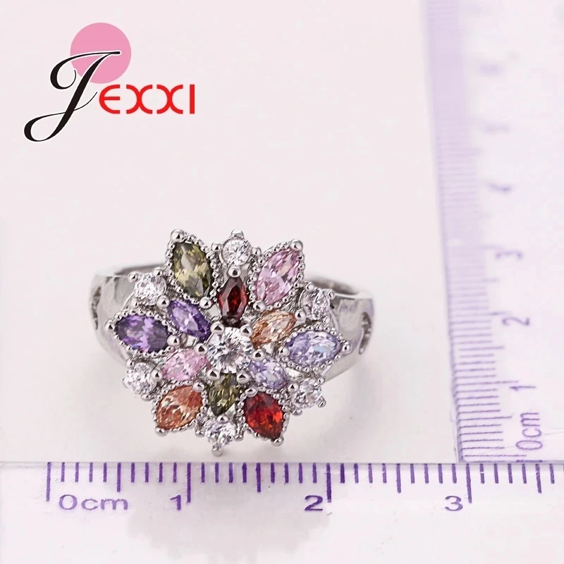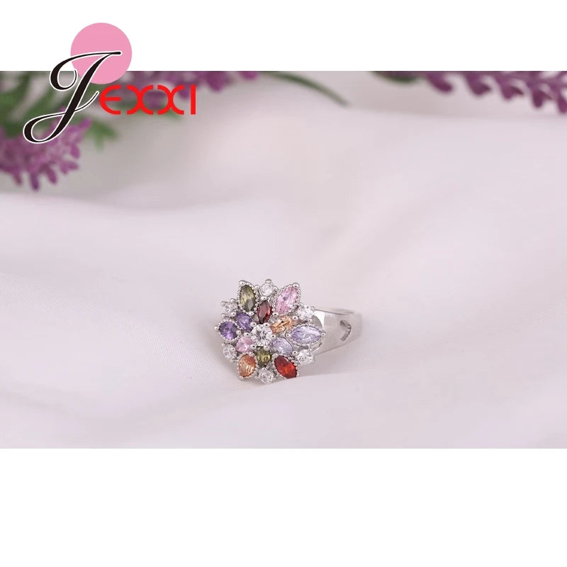 Girls Bling Jewelry Finger Accessories Fashion 925 Sterling Silver Colorized Flower Shape Rings Wholesale
