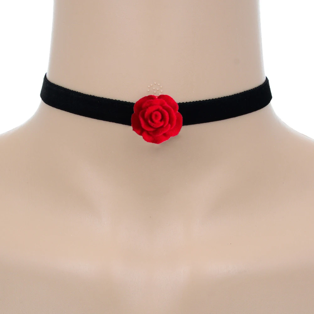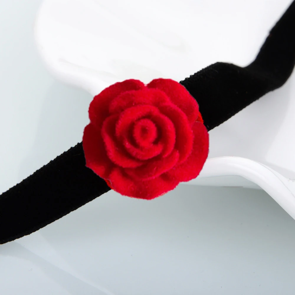 Girls Small Flower Rose Necklace Sexy Lace Choker Collar Jewelry for Women Retro Dinner Party Neck Band Short Chain Necklaces