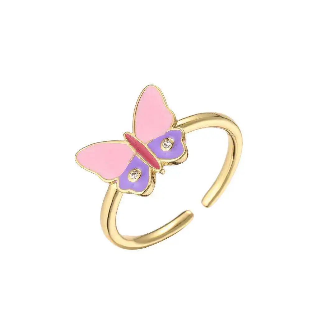 Butterfly Rainbow Rings,Sweet Trendy Geometric Square Dripping Oil Ring for Women