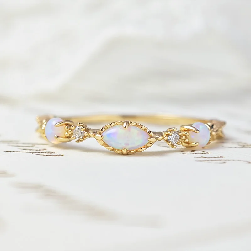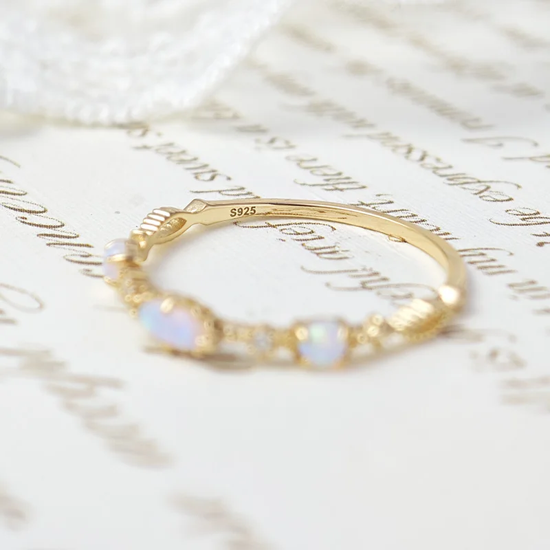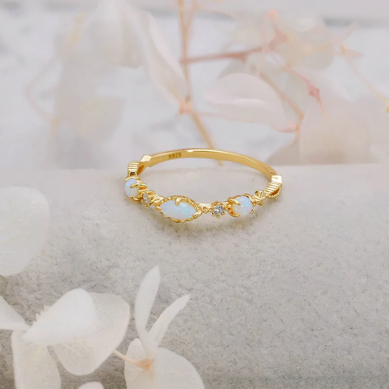 Vintage Bijou Opal Ring For Women Classic Elegant Thin Ring 925 Sterling Silver Gold Plated Fine Jewelry Accessories Gift