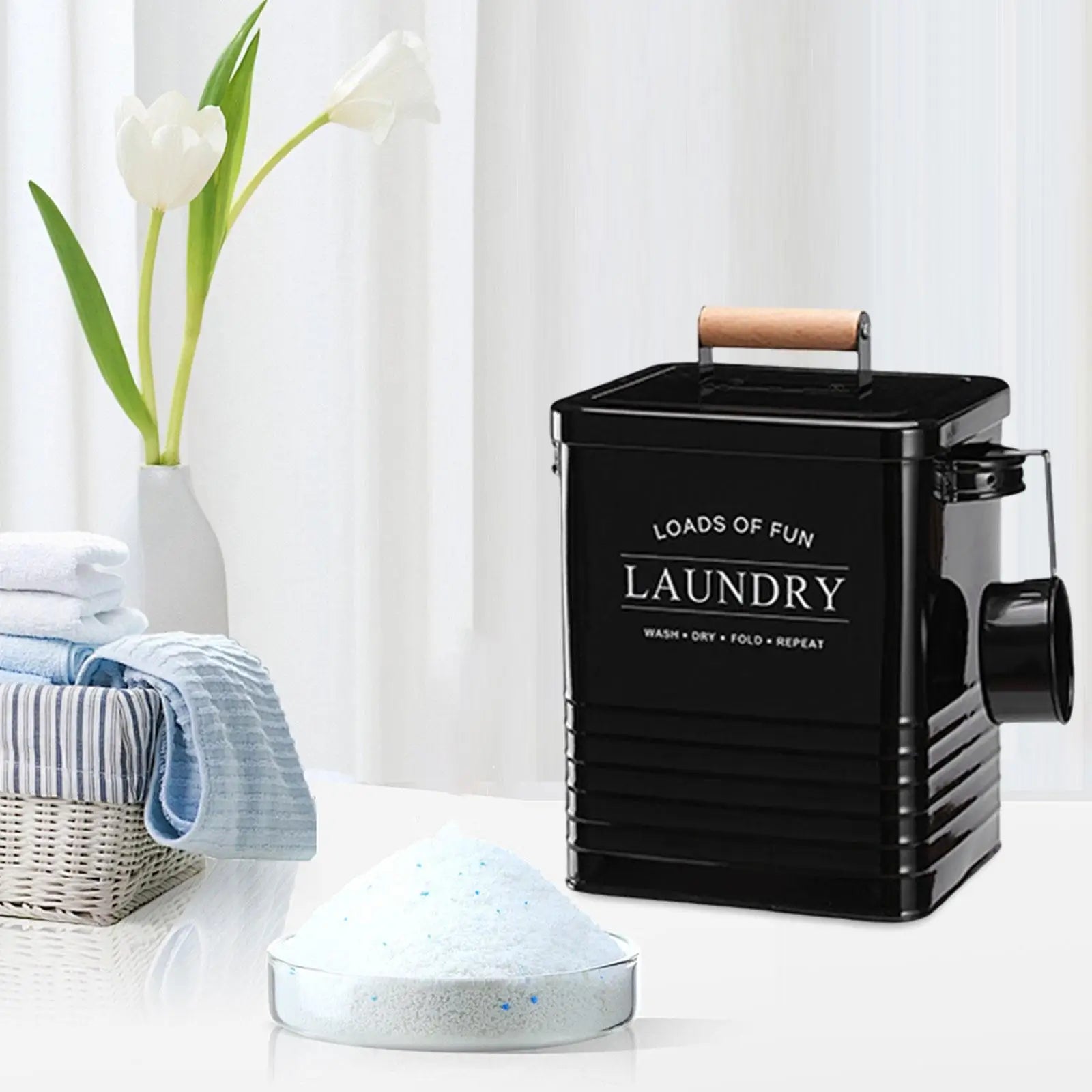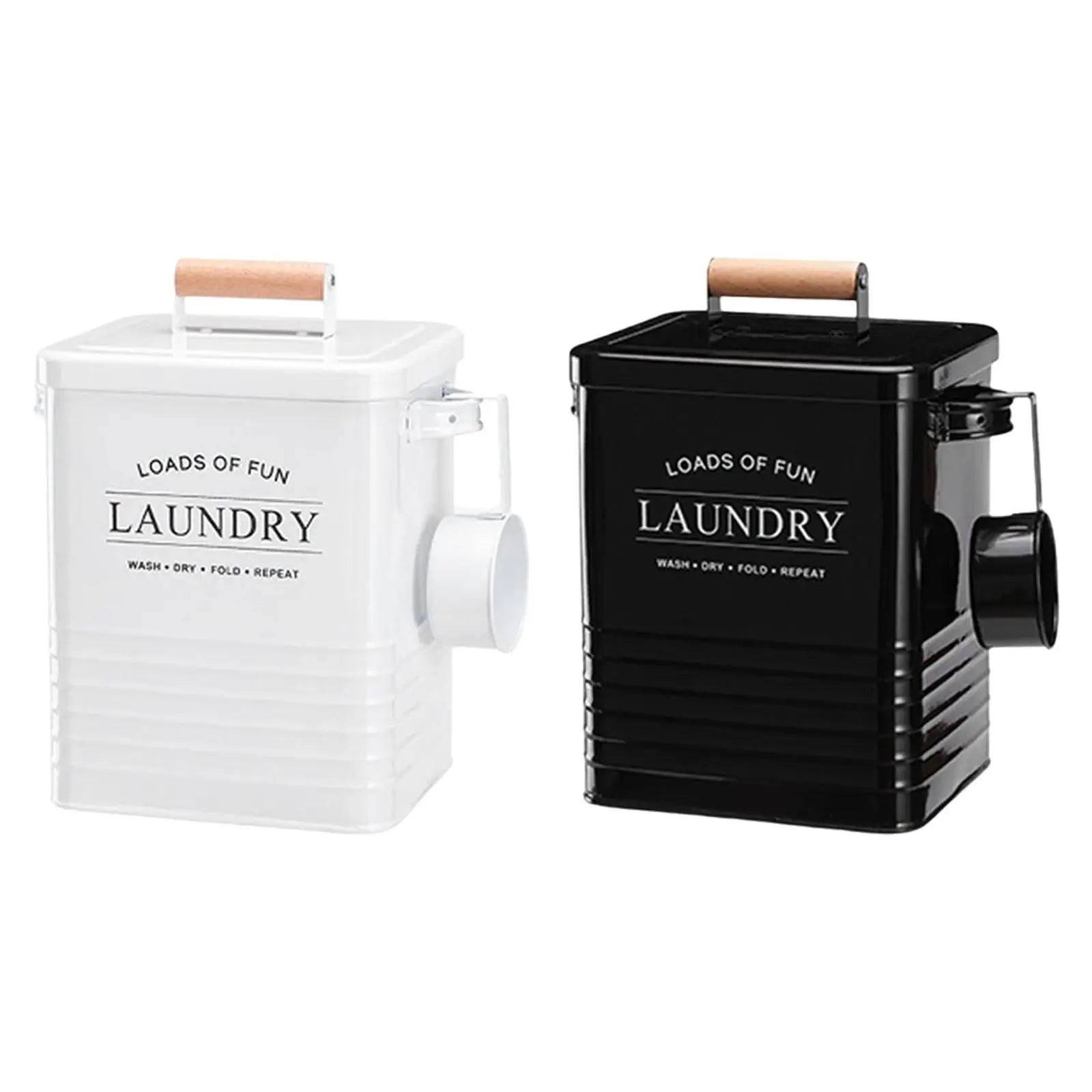 【Sturdy & Quality Material】: Crafted from premium iron, this storage bin is built to last, Its sturdy construction ensures longevity, and the wide mouth opening makes refilling with laundry powder, rice, or other items a quick and spillproof task