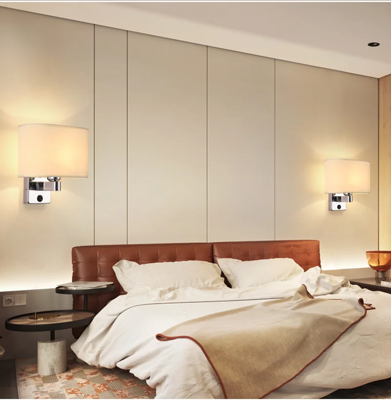 LED Lights Indoor Lighting Fabric Lampshade Wall Lamps for Bedside Bedroom Living Room Hotel Stairs Hotel Home Decoration