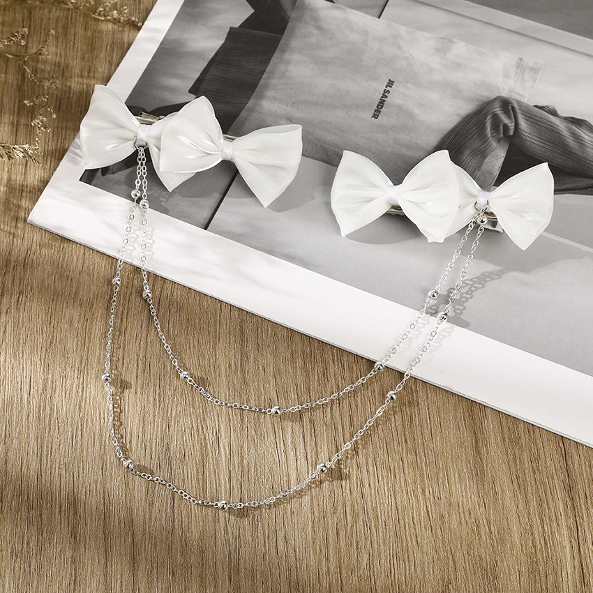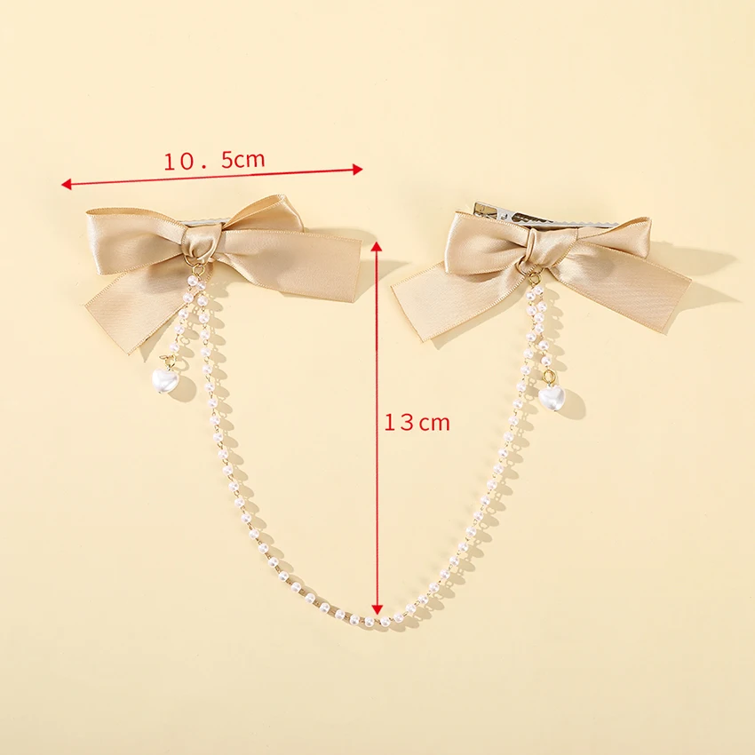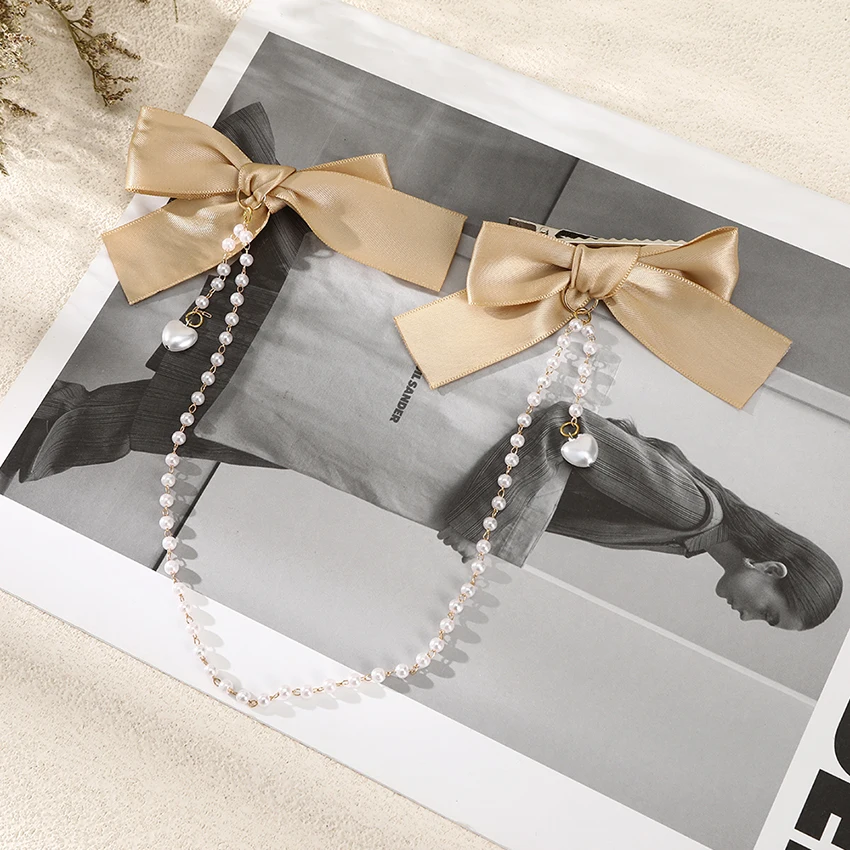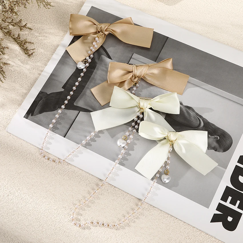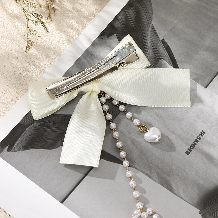 Spring girl bow duckbill clip pearl chain decoration Fashion items suitable for girls to take pictures and go shopping