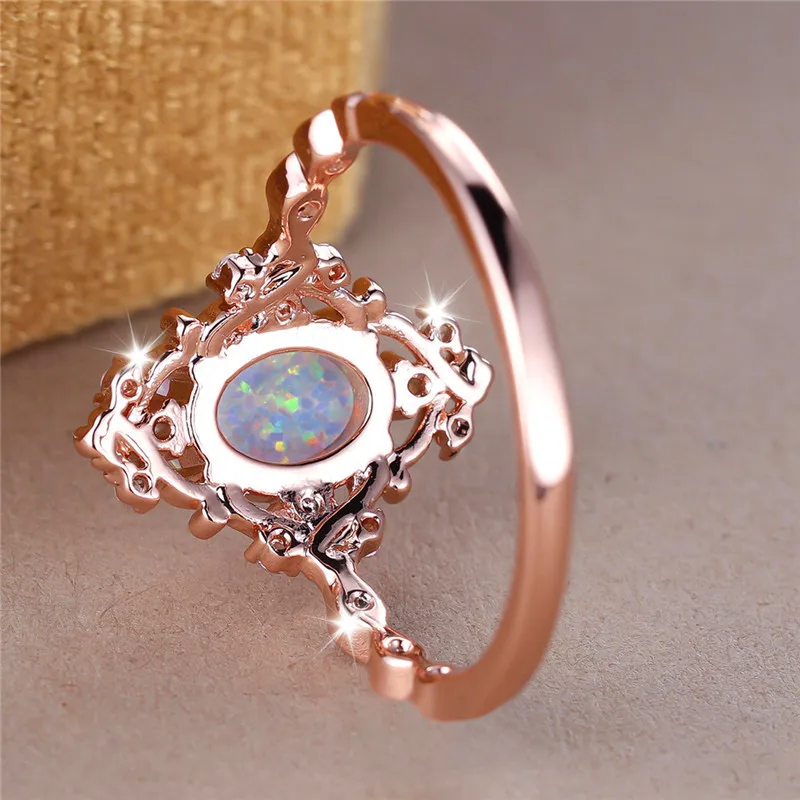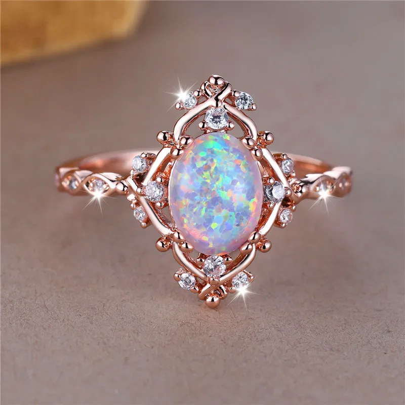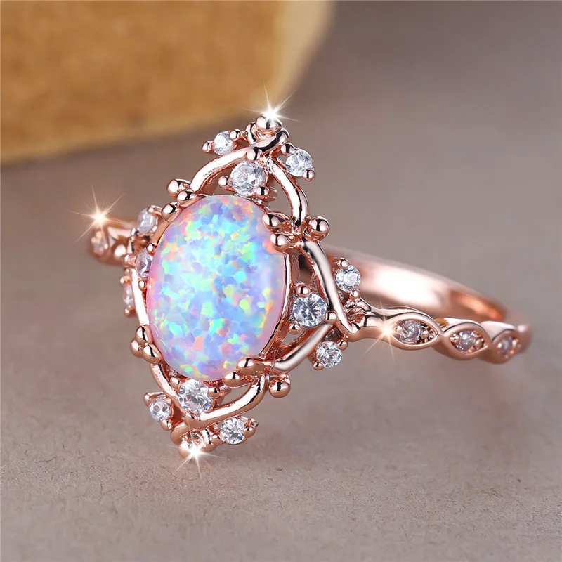 Luxury Female White Fire Opal Stone Engagement Ring Trendy Rose Gold Color Bride Wedding Jewelry Gift For Women