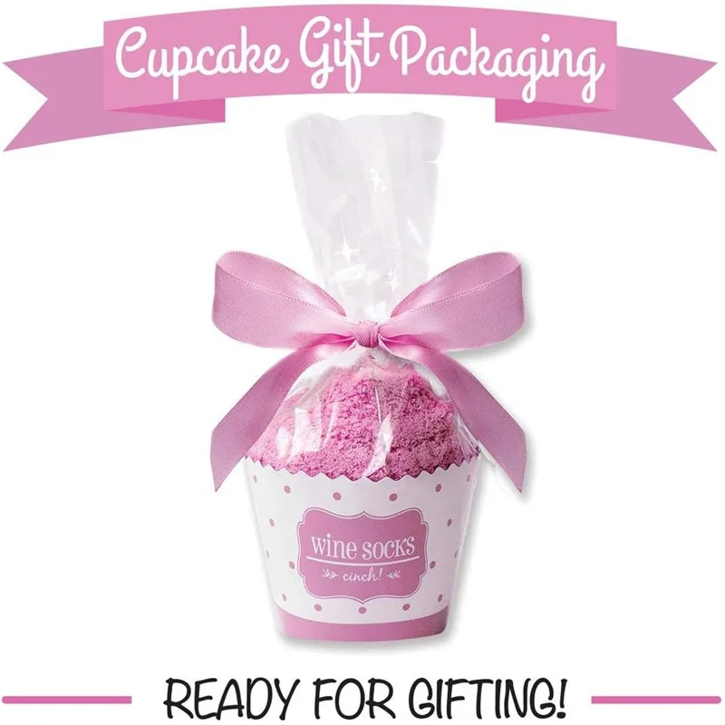 *Want to put a smile on the face of the wine lover in your life? – Look no further because the adorable gift-ready cupcake packaging and hilarious wine socks are guaranteed to make your recipient squeal with joy. We promise, the look on their face will be priceless! Our customers love to give them as a stocking stuffer, a unique side gift, or bundle it with wine and chocolate.