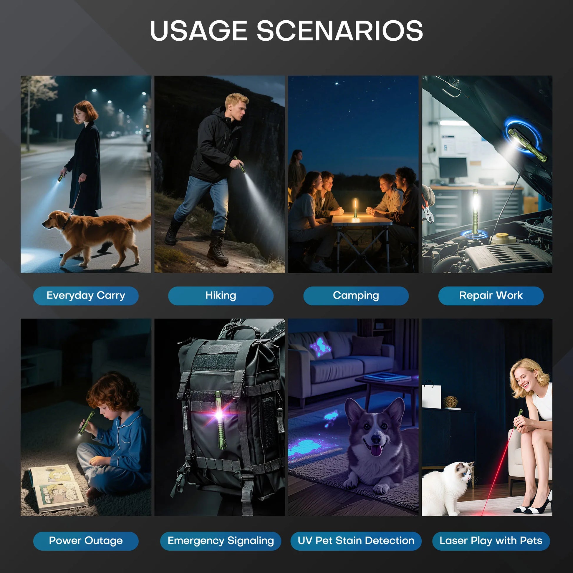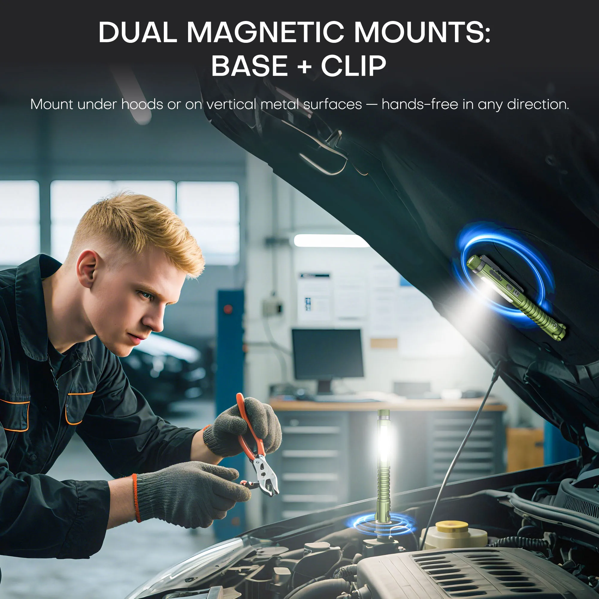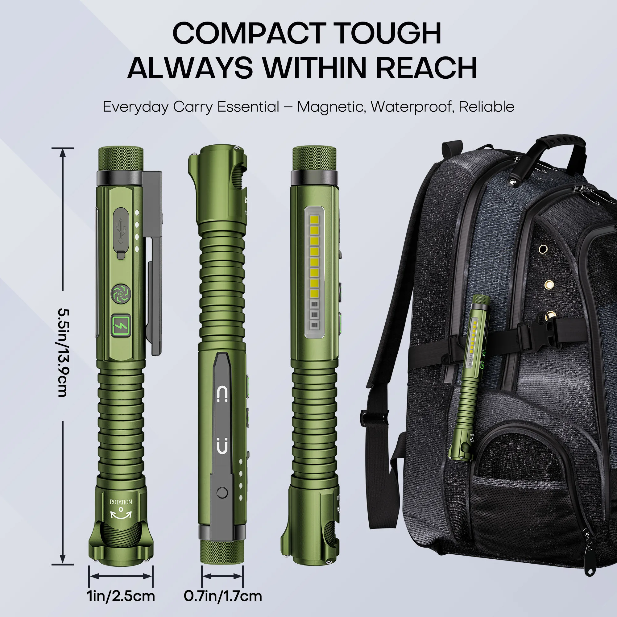 Magnetic LED Flashlight, 800 Lumen Rechargeable Flashlight, Laser Pointer, Hands-Free, USB Charging Cable, for Work and Outdoor