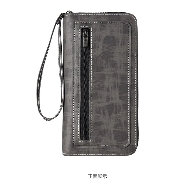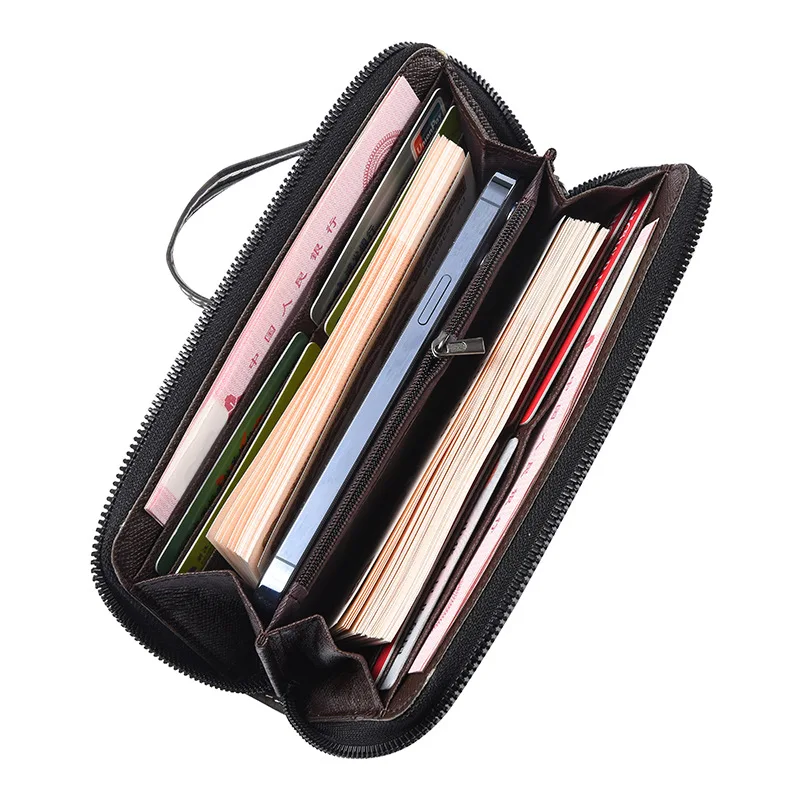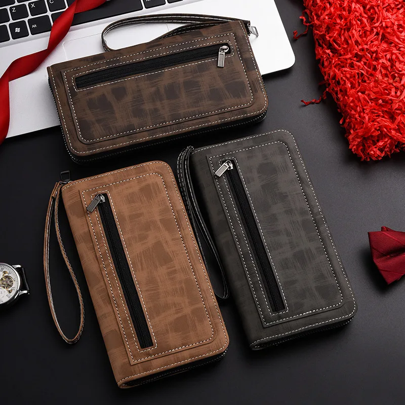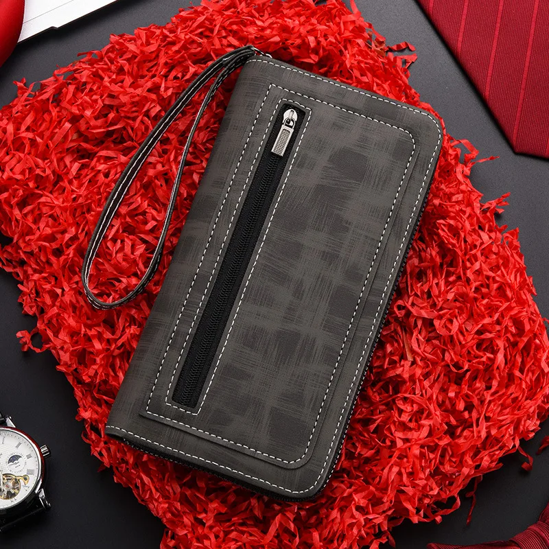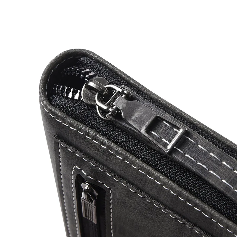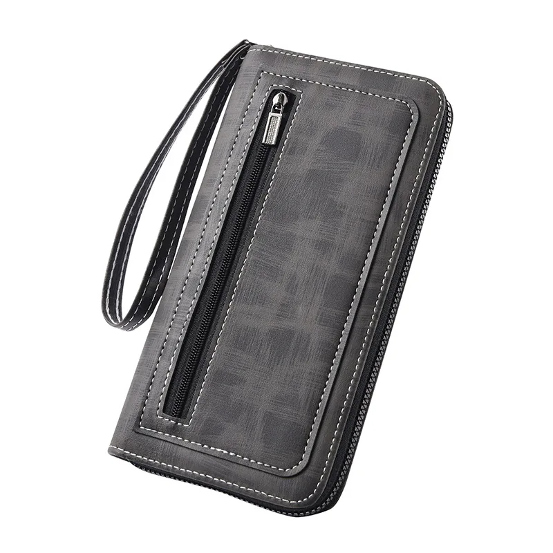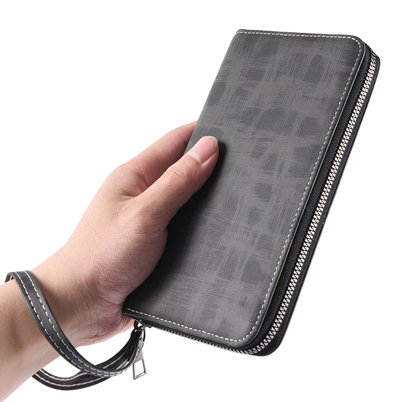 Men'S Long Wallet Vintage Zipper Coin Purses Credit Card Holder Business Clutch Bag Phone Money Purses Porable PU Leather Wallet