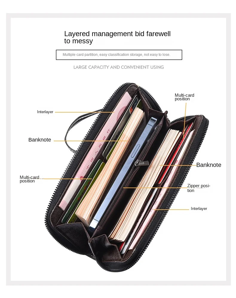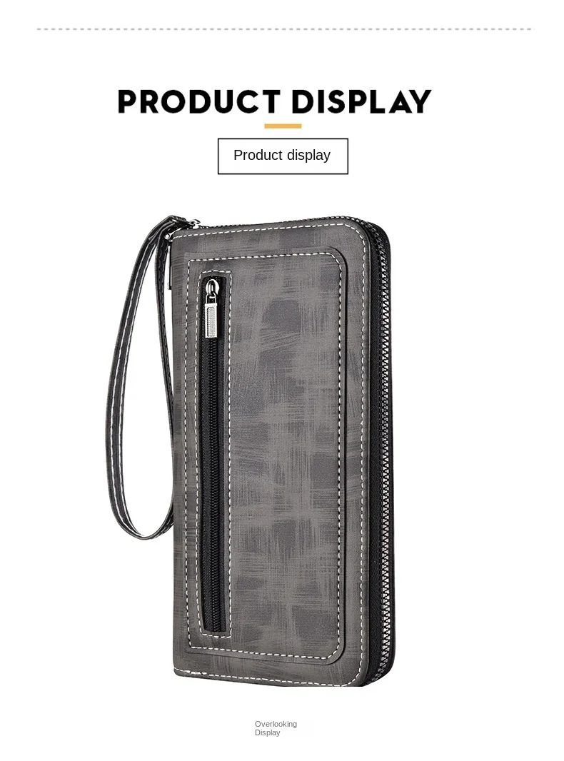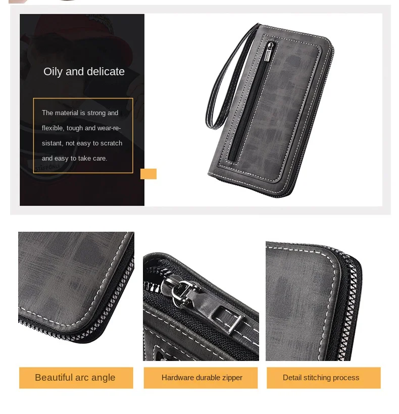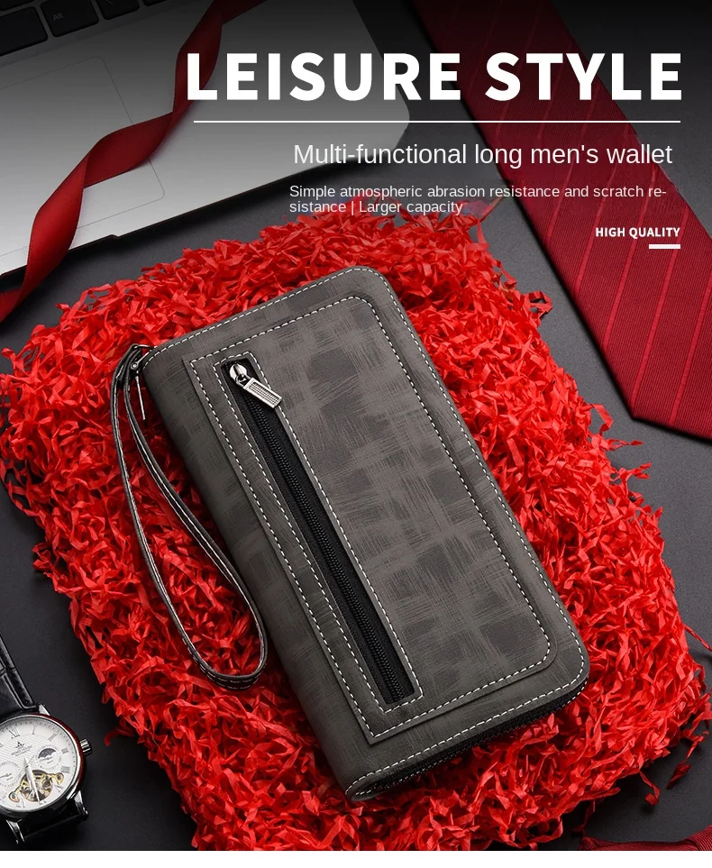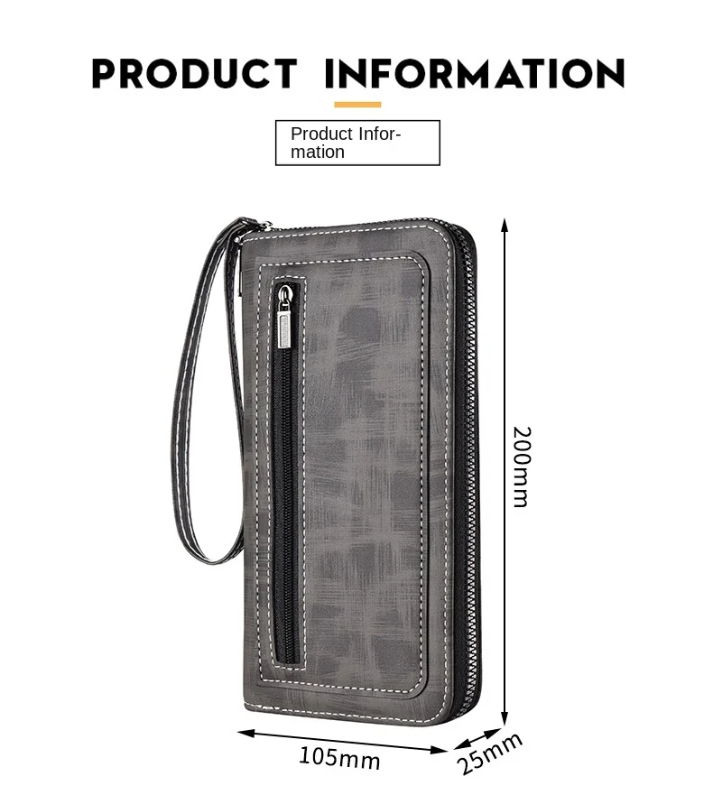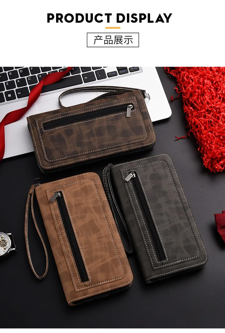 Men'S Long Wallet Vintage Zipper Coin Purses Credit Card Holder Business Clutch Bag Phone Money Purses Porable PU Leather Wallet