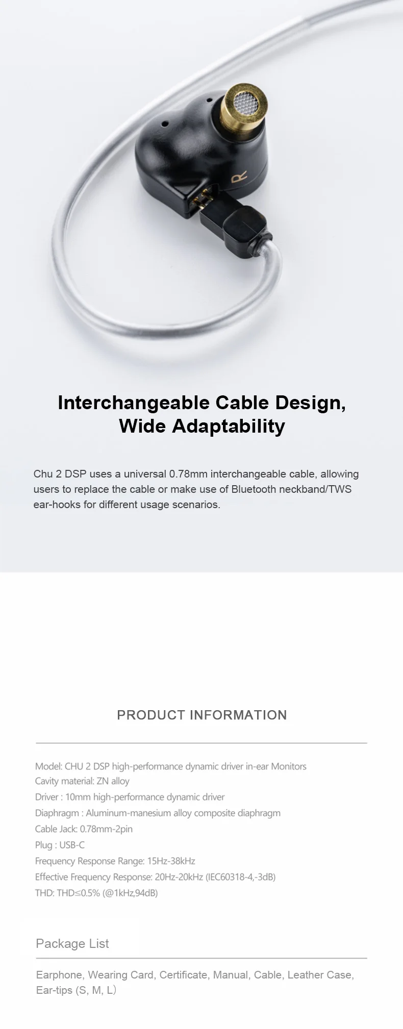 Moondrop Chu II DSP 10mm High-performance Dynamic Driver IEMs Earphones Wired Earbuds TYPE-C With Mcrophone Earphone
