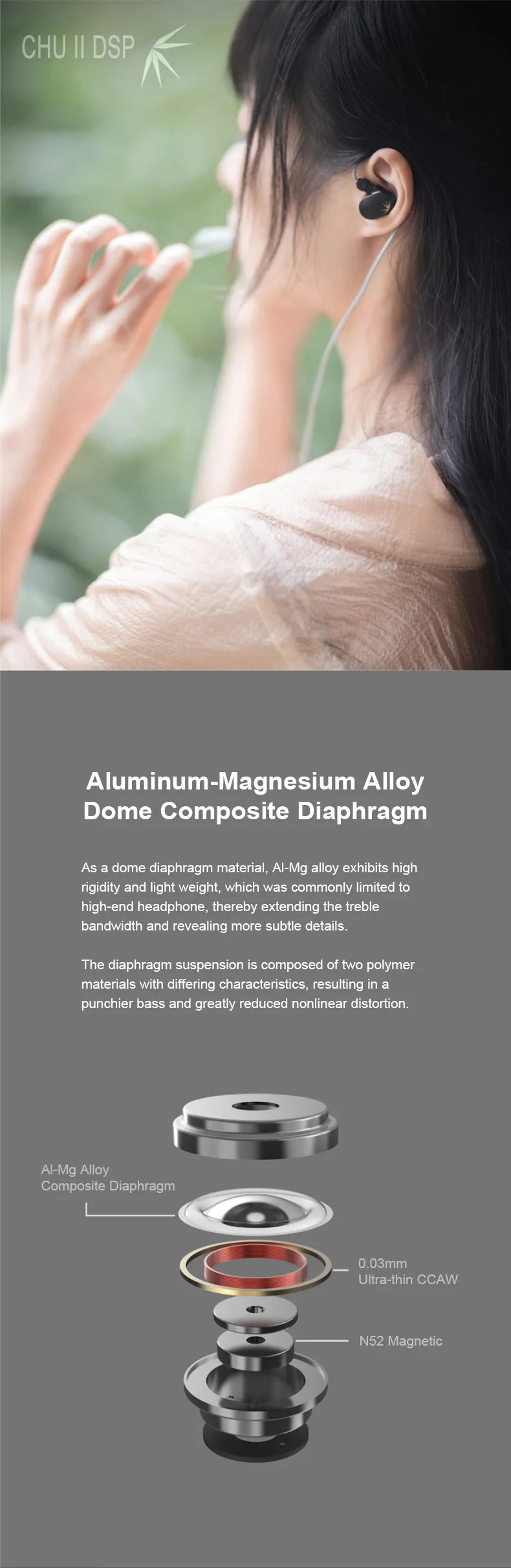 Diaphragm:Aluminum-manesium alloy composite diaphragm