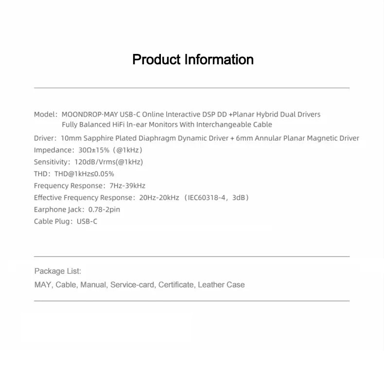 Model: MOONDROP · MAY USB-C Online Interactive DSP DD +Planar Hybrid Dual Drivers Fully Balanced HiFi In-ear Monitors With Interchangeable Cable