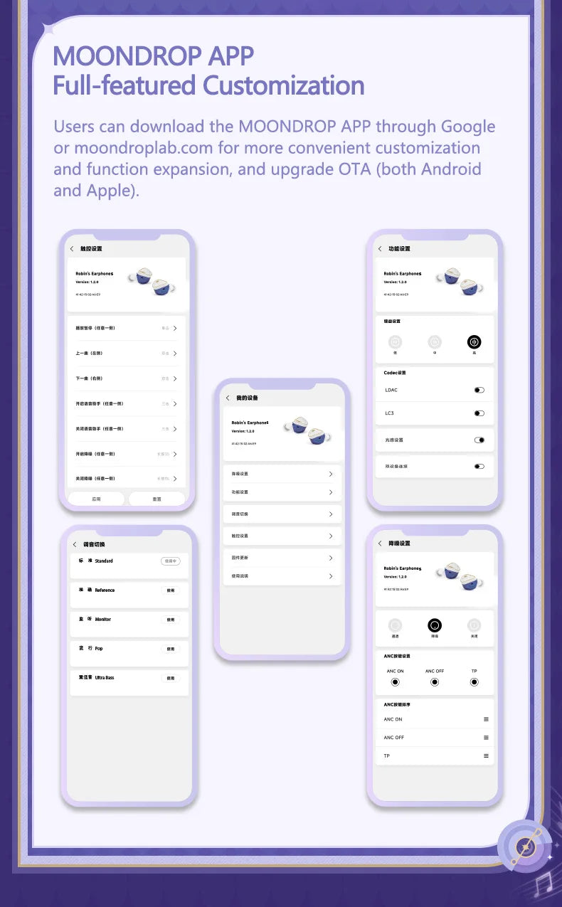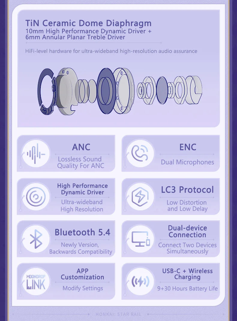 MOONDROP ROBIN Earphone Honkai Star Rail Robin's Earphones TWS Hybrid Dynamic Driver + Planar Driver ANC TWS Earphones
