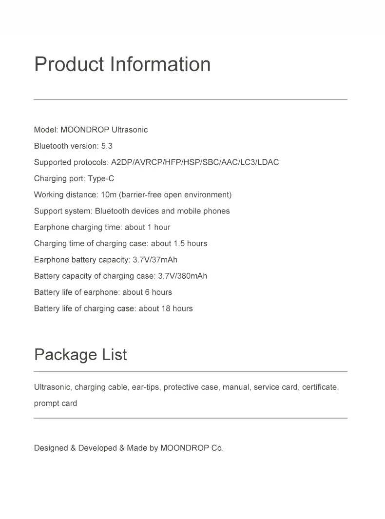 Moondrop UltraSonic Earbuds 1DD 1BA Hybrid Hi-Fi ANC True Wireless LDAC IEMs Earphone 5.3 Bluetooth In-Ear TWS Sports Headset
