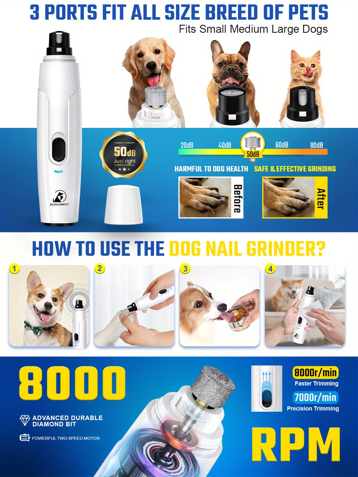 Nail Grinder for Dogs- Upgraded Dog Nail Trimmers Super Quiet, 2 Speeds, Rechargeable, 2 Grinding Wheels for Small Large Dogs& Cats