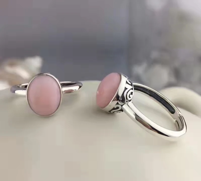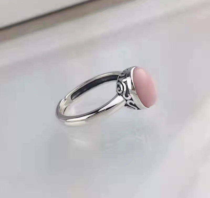 The latest natural pink opal women's ring, s925 Thai silver inlaid vintage old style.
