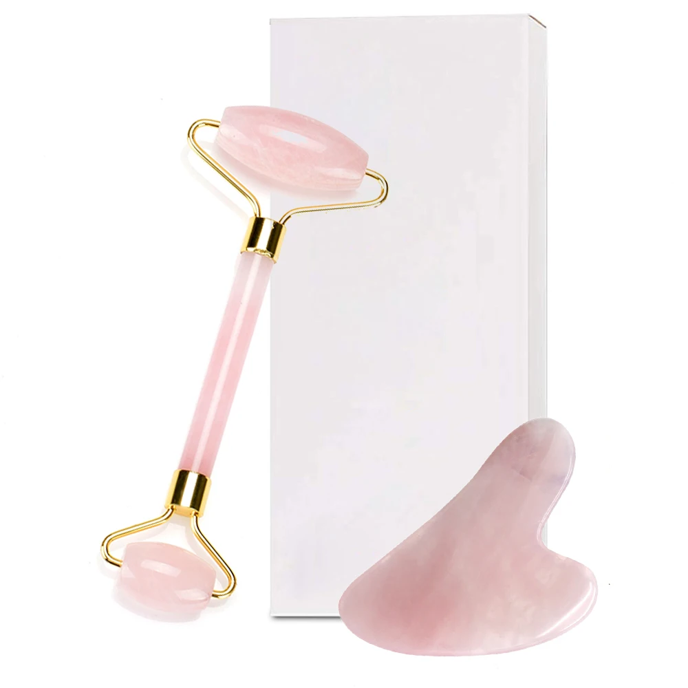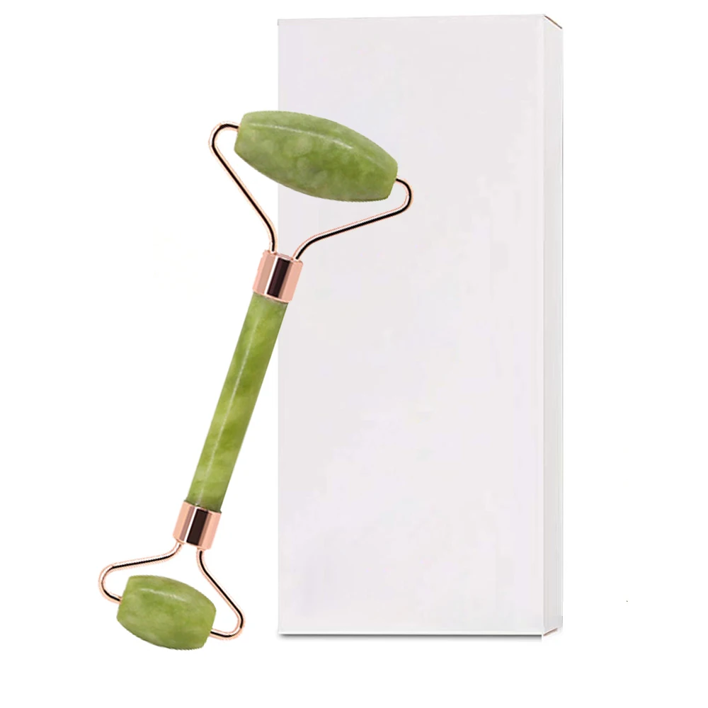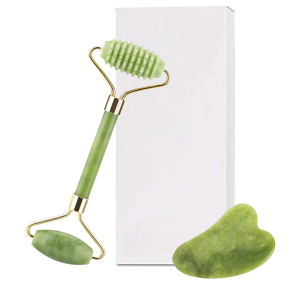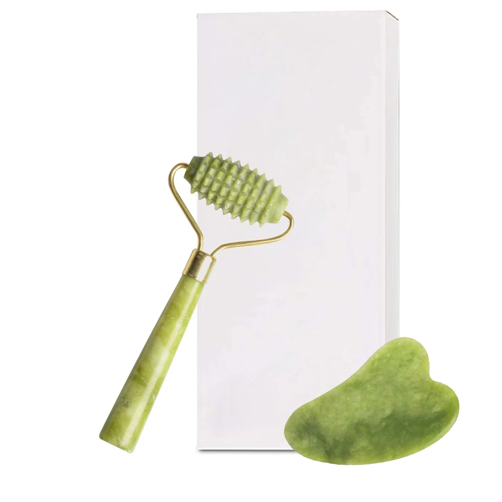 natural quartz jade roller facial massager with guasha board Green Pink black kits for face neck roller massage