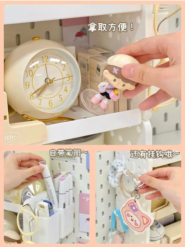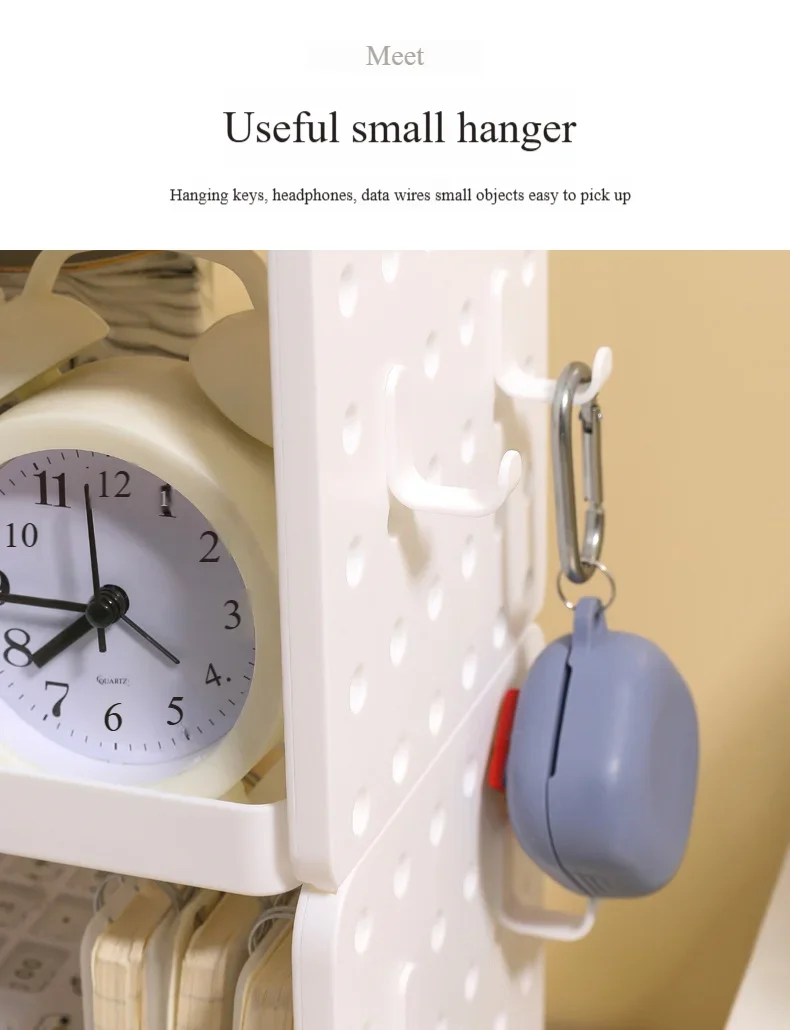 This innovative HIPS Material Desktop Organizer combines a pegboard system with modular storage solutions, perfect for decluttering desks, offices, or study areas. The DIY-friendly design allows you to freely assemble and customize compartments, hooks, and shelves to fit your needs—ideal for storing pens, tools, keys, headphones, cables, and more. Whether mounted on the wall or placed upright on your desk, it maximizes vertical space while adding a modern aesthetic to your workspace.