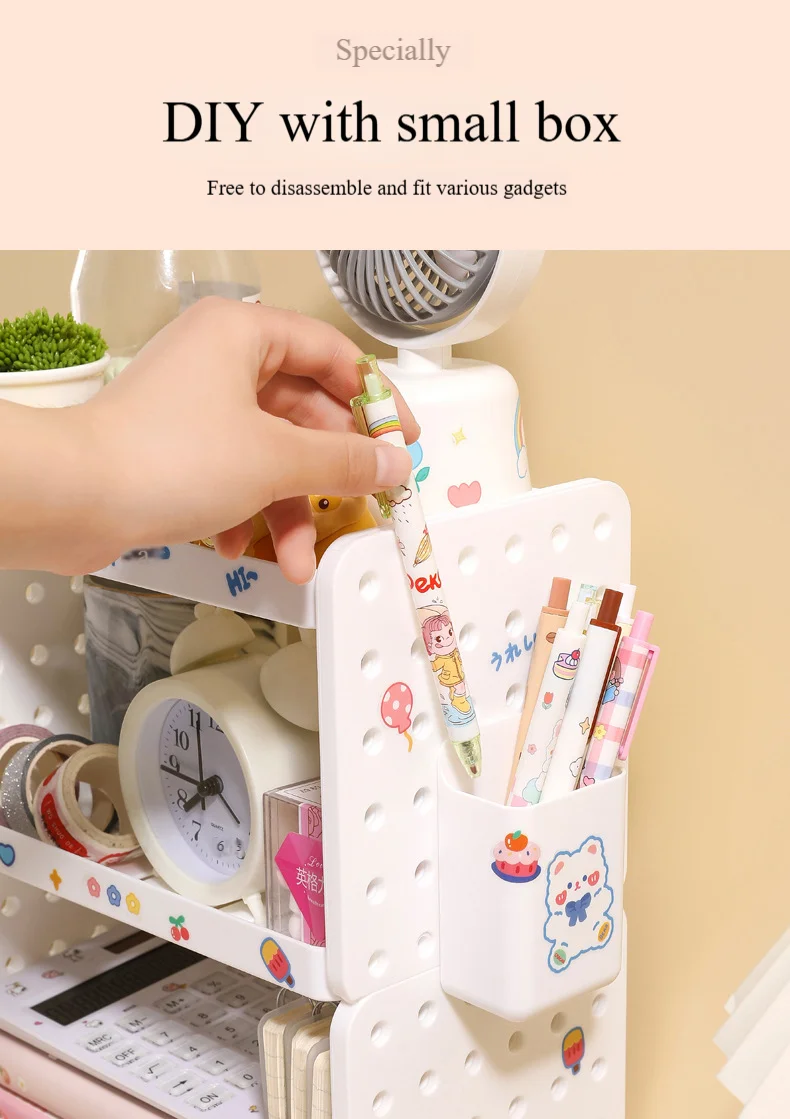 Modular Trays & Pen Holders: Mix and match storage boxes and pen slots to organize stationery, craft supplies, or tech accessories. The lightweight yet robust structure supports daily use without cluttering your desk.