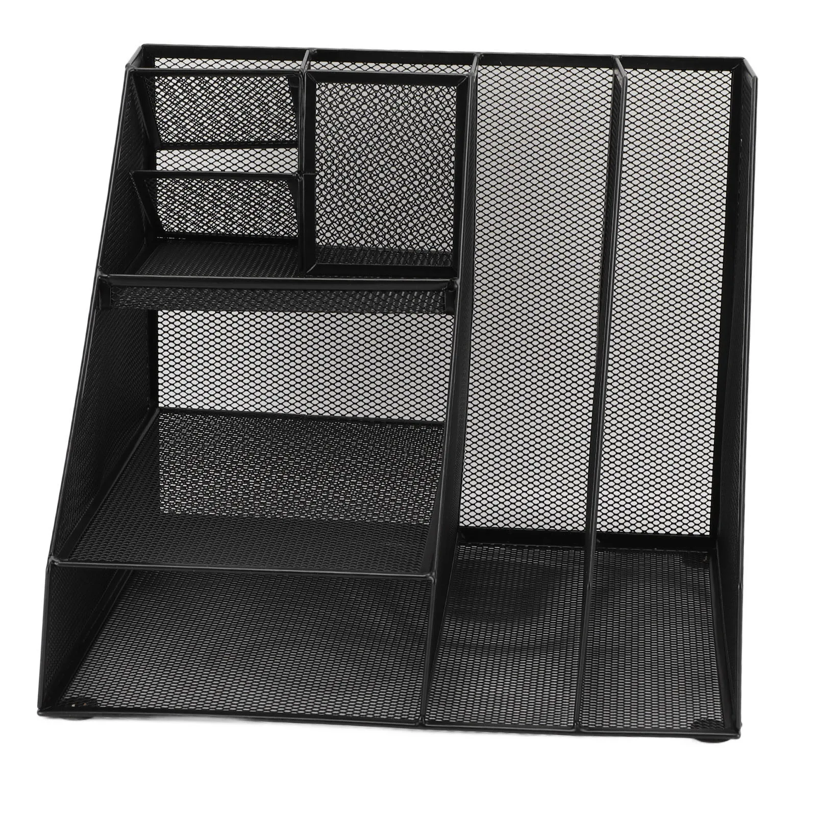 Metal Mesh Desktop Organizer Black Iron Multifunctional Office Supplies Organizer with Pen Holder for Home School