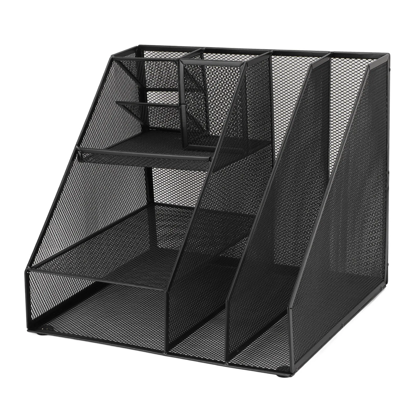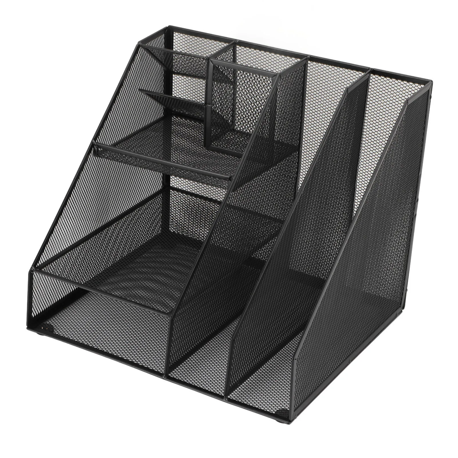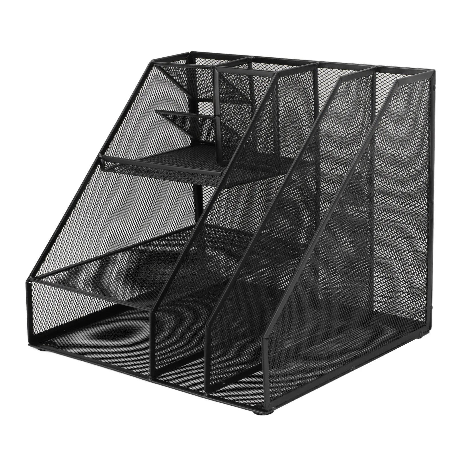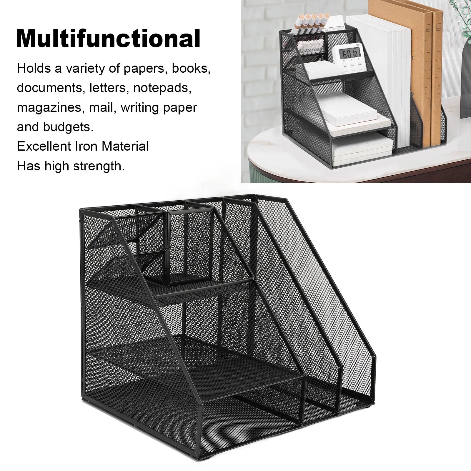 Office Supplies Organizer with Pen Holder Metal Mesh Desktop Organizer Black Iron Multifunctional File Organizer for Home School