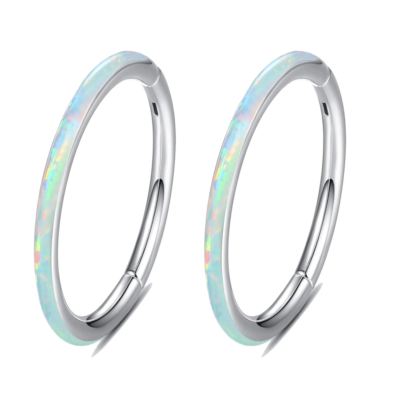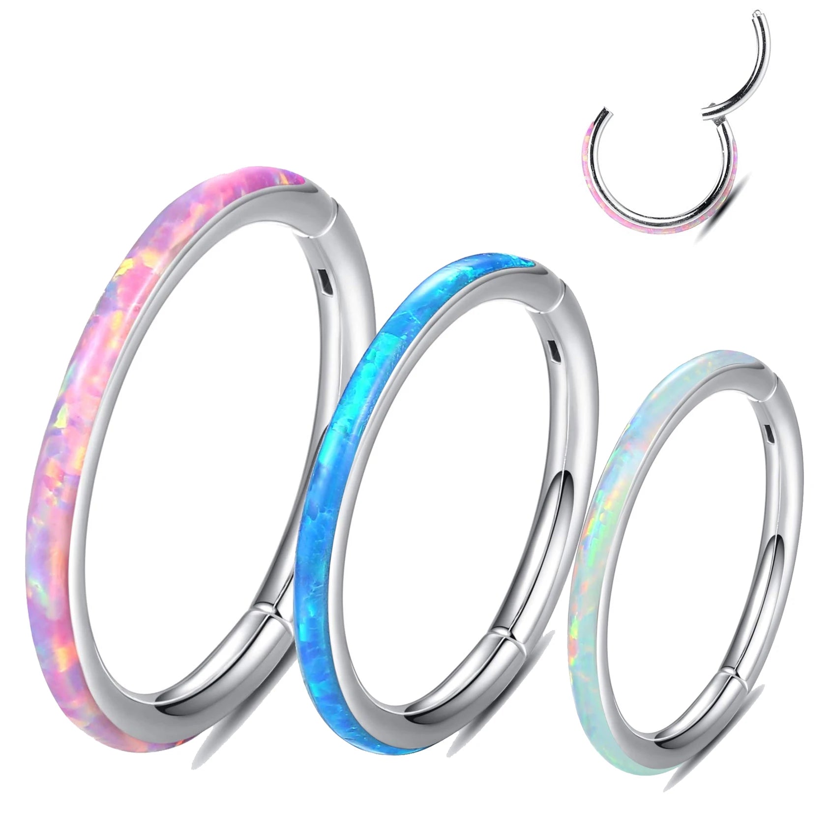 Opal Hinged Nose Ring Hoop Women Septum Hoop Ring Tragus Rook Ring Piercing Jewelry Lip Labret Ring Clicker Cartilage Earrings