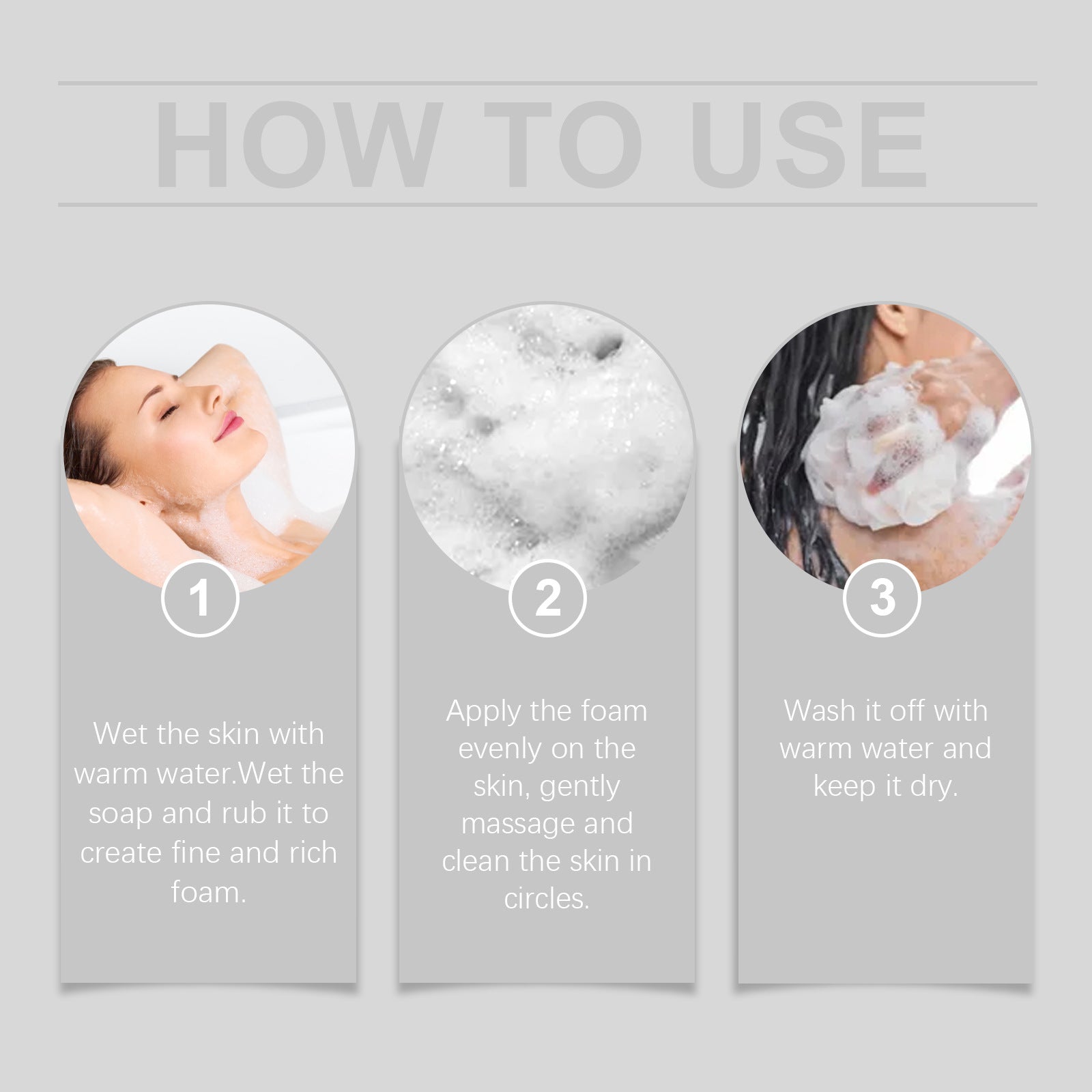 3. Apply the foam evenly on the skin, gently massage and clean the skin in circles.