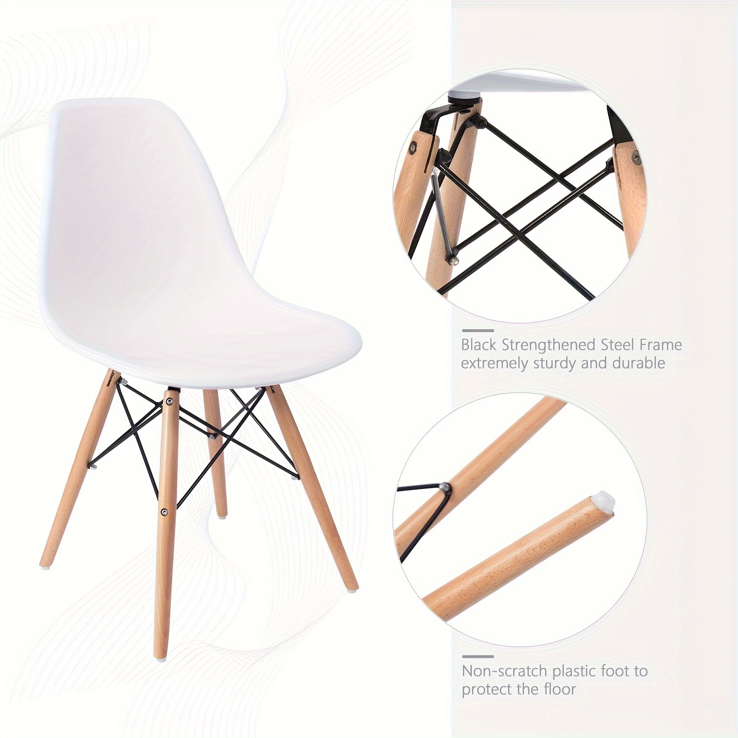 Pre-Assembled Mid Century Modern Dining Chairs, Set of 4, White