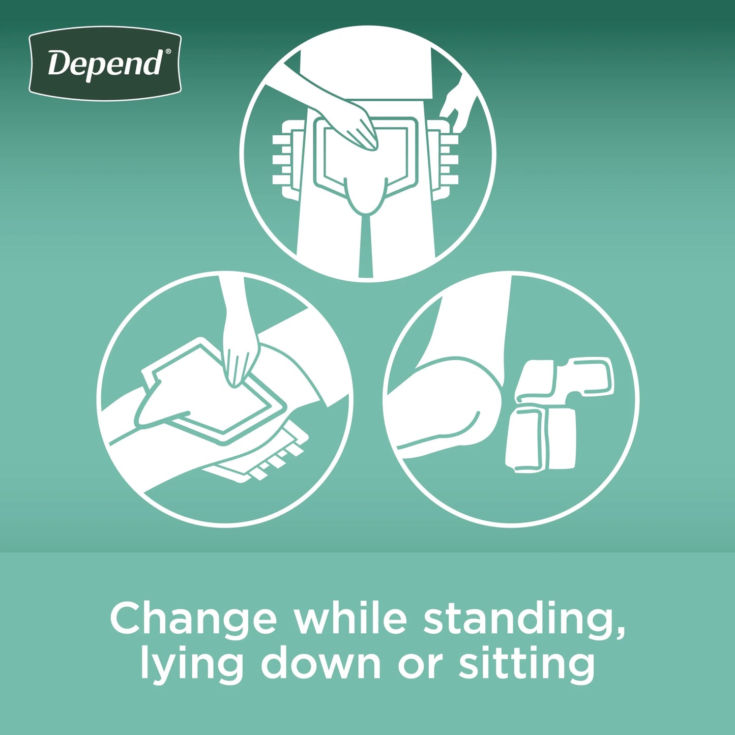 - EASY TO CHANGE: Depend Protection with Tabs adult diapers are easy to change and fit comfortably