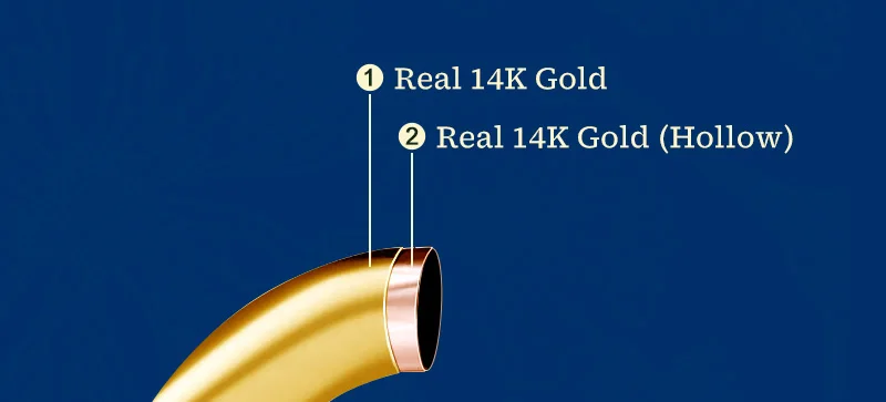 You might wonder, why are our prices so affordable?We use to the advanced 5D hollow technology we employ. Hollow 14K gold offers the same luxurious look as solid gold at a lower price. Enjoy high-quality gold jewelry without the high cost, making luxury more accessible for everyone.