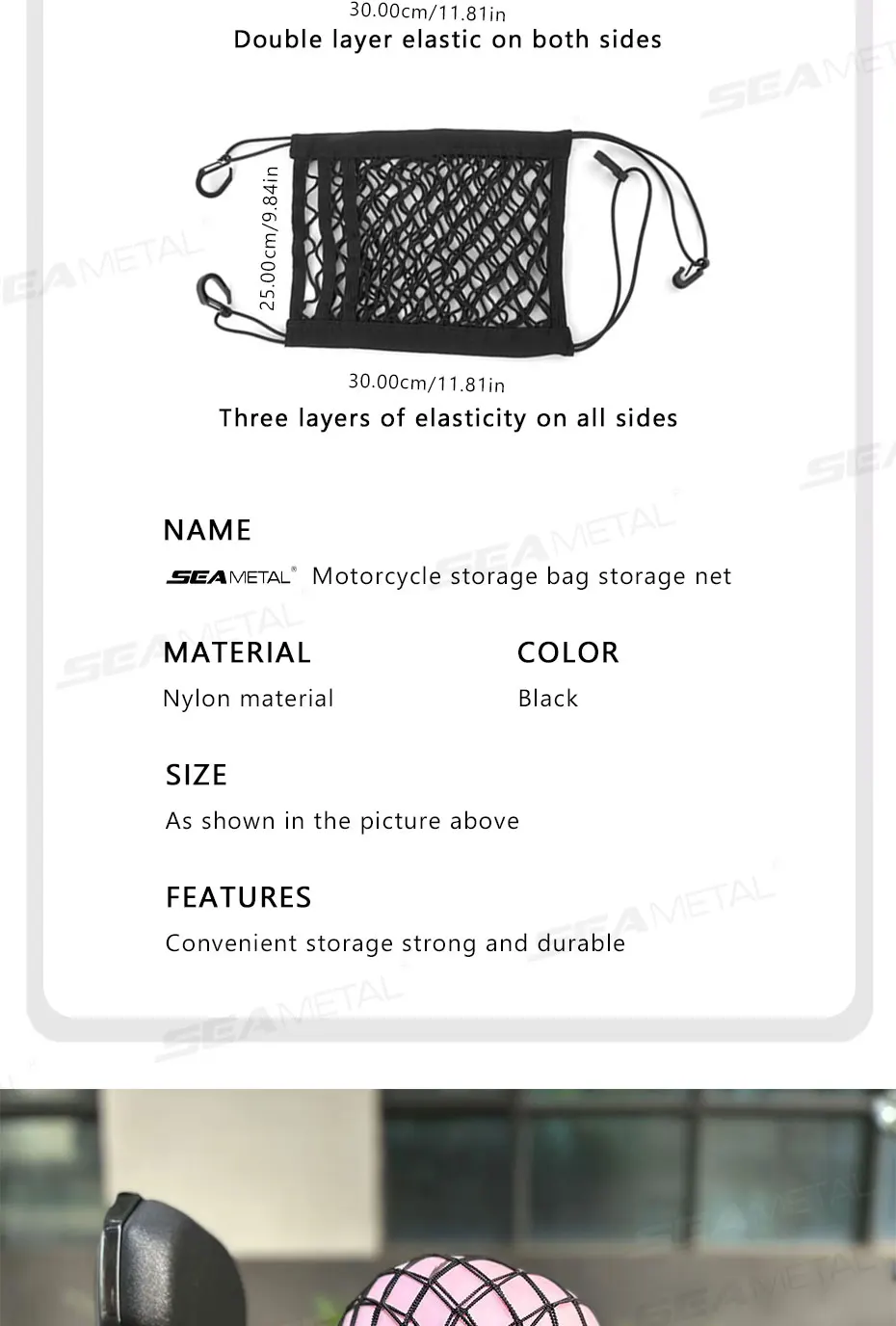 1. High Elasticity——The motorcycle luggage net is crafted from nylon material, durable latex line material that is both waterproof and wear-resistant. Its high-elasticity design allows it to stretch and expand, accommodating various loads while securely holding them in place during your ride.