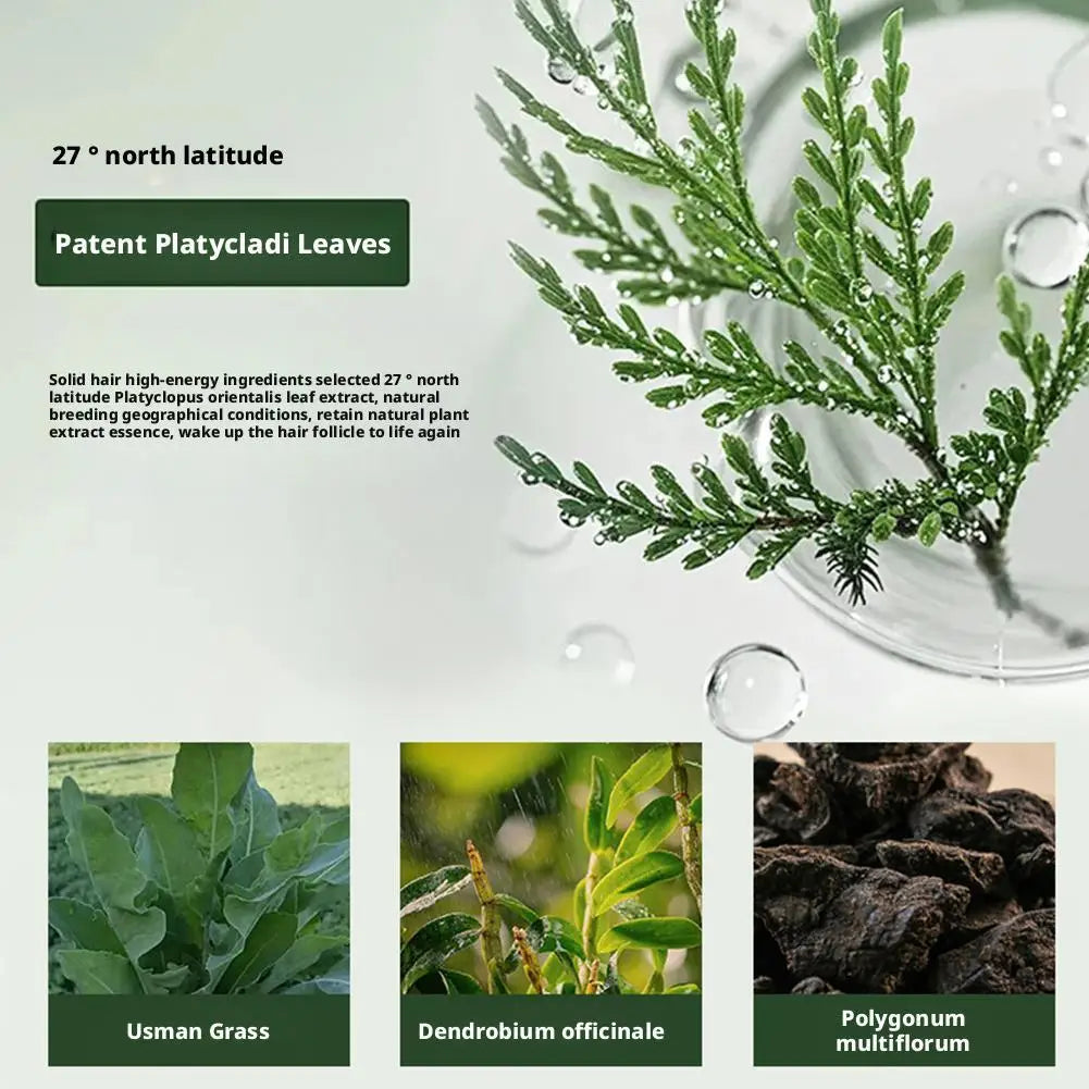 1. Natural herbal formula containing Platycladus orientalis, Usmanthus sinensis, and Polygonum multiflorum gently nourishes the scalp, strengthens hair roots, and reduces hair loss and breakage.