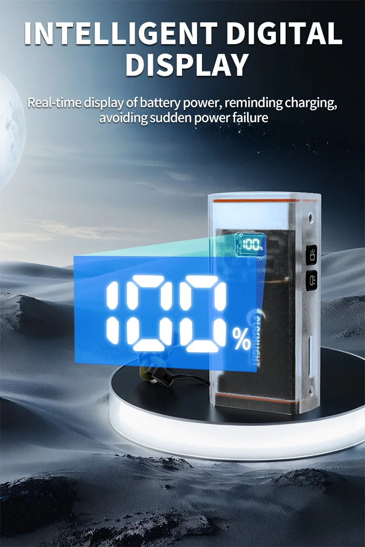 12.Indicator light:digital percentage LED power display, green light flashing during charging.