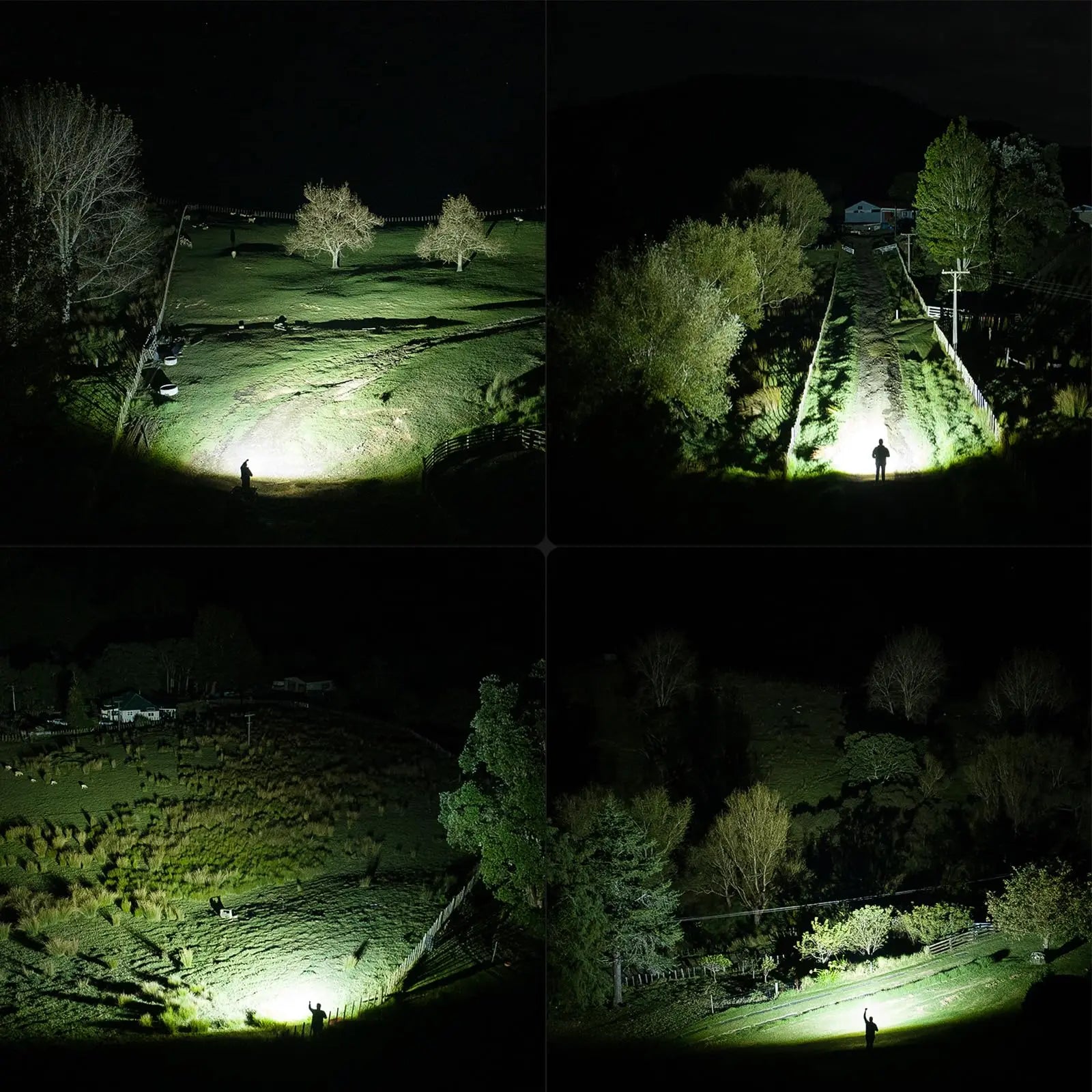 Experience ultra-bright 3600-lumen illumination with three high-performance P50 LED cores, perfect for outdoor adventures, security patrols, and emergency situations.
