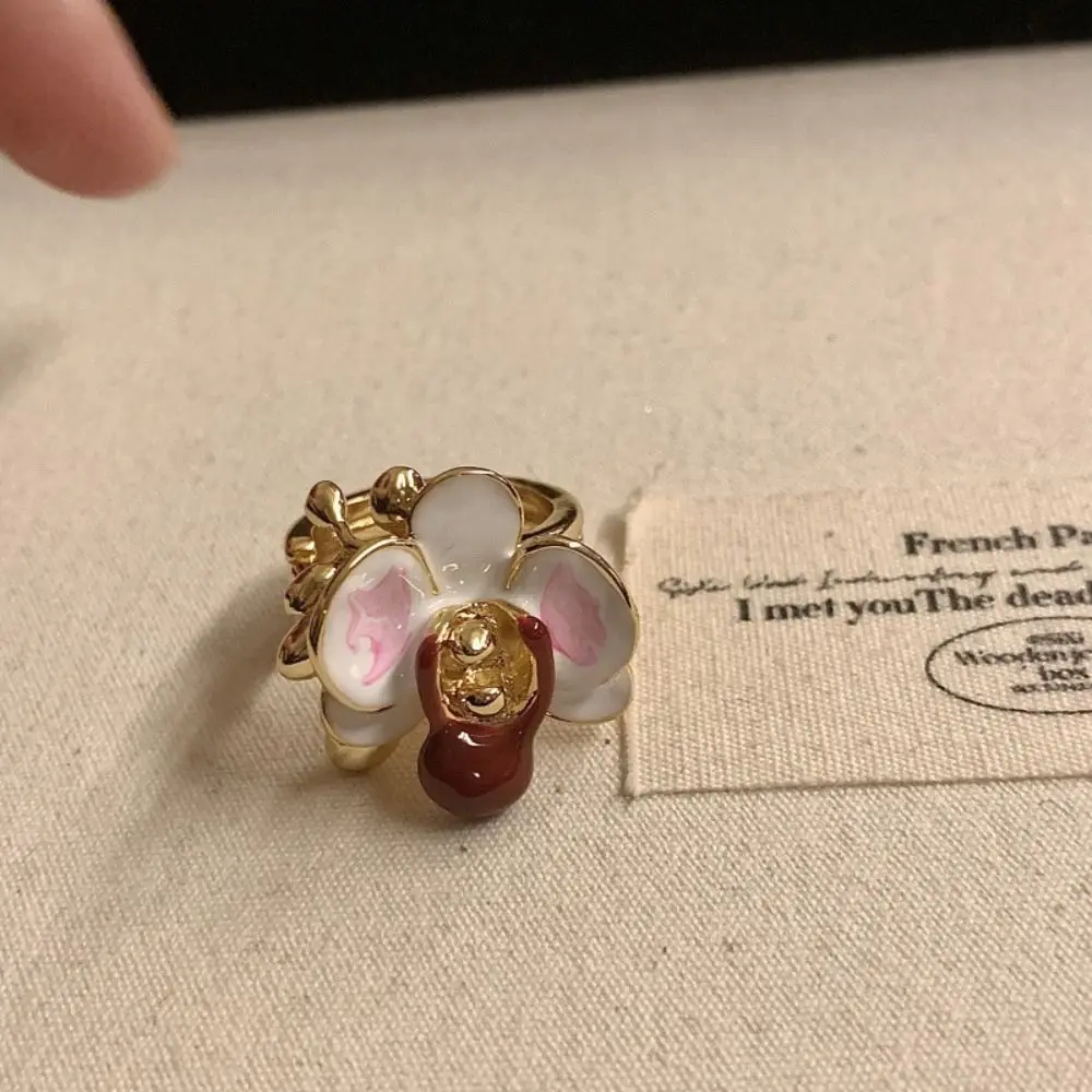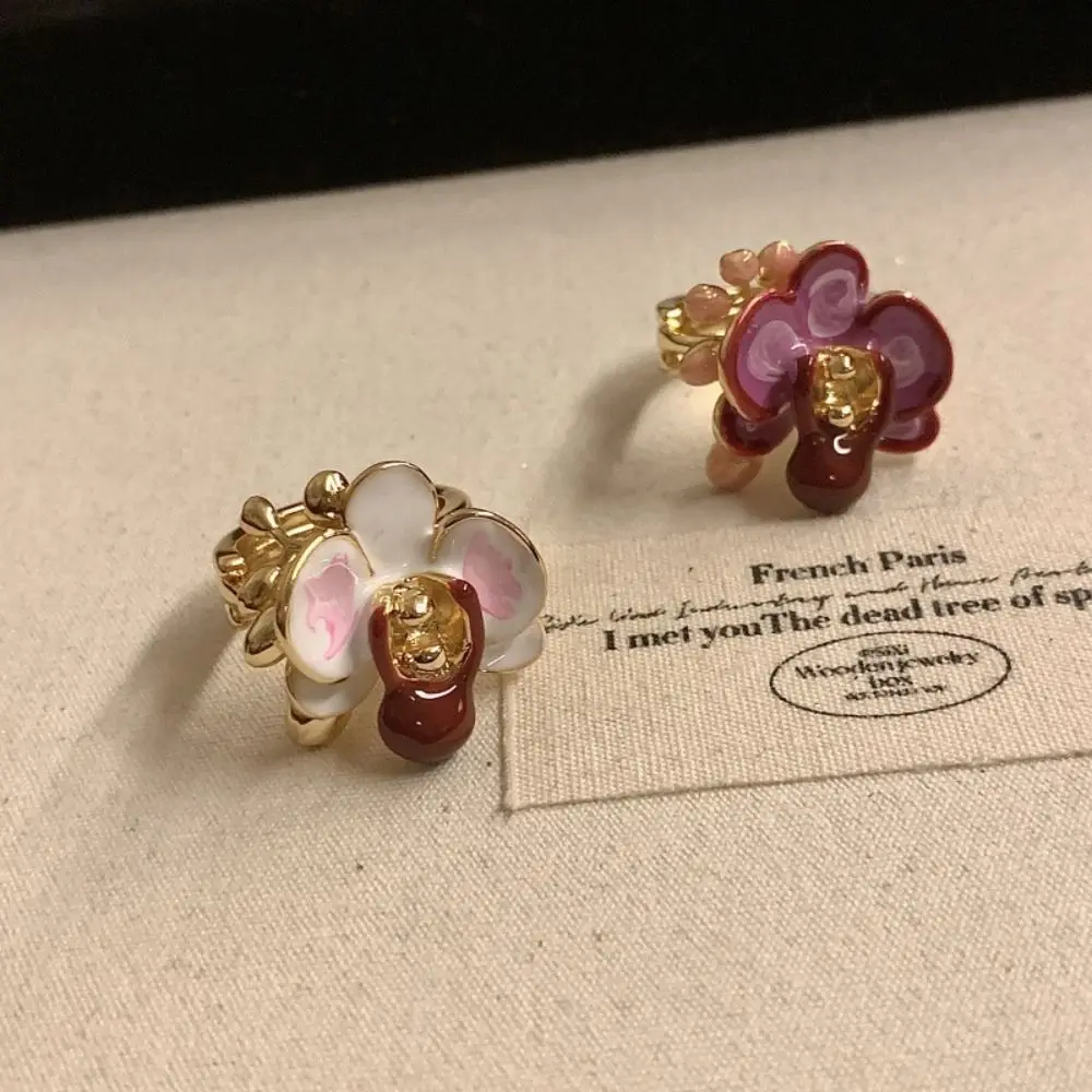 Sweet Drip Oil Flower Ring Butterfly Orchid White Iris Flower Enamel Finger Ring Ins Style Trendy French Irregular Ring Women