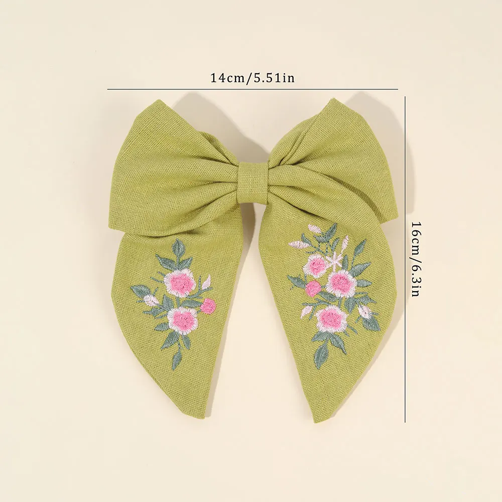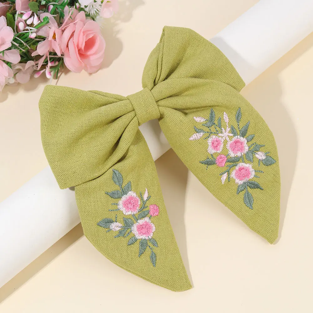 Sweet Embroidered Flower Hair Bows Clips Handmade Ribbon Solid Hairpins Cute Bowknot Barrettes Headwear Kids Hair Accessories