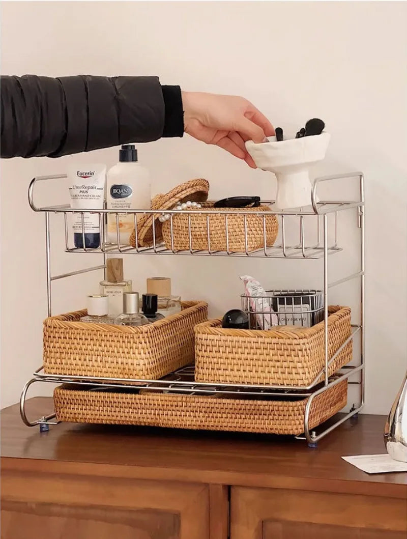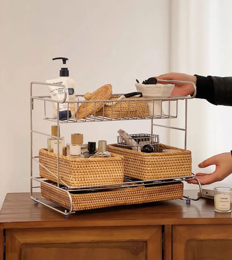 Three Layers Living Room Storage Racks Stainless Steel Practical Simple Kitchen Desktop Storage Holder Luxury Modern Home Decor