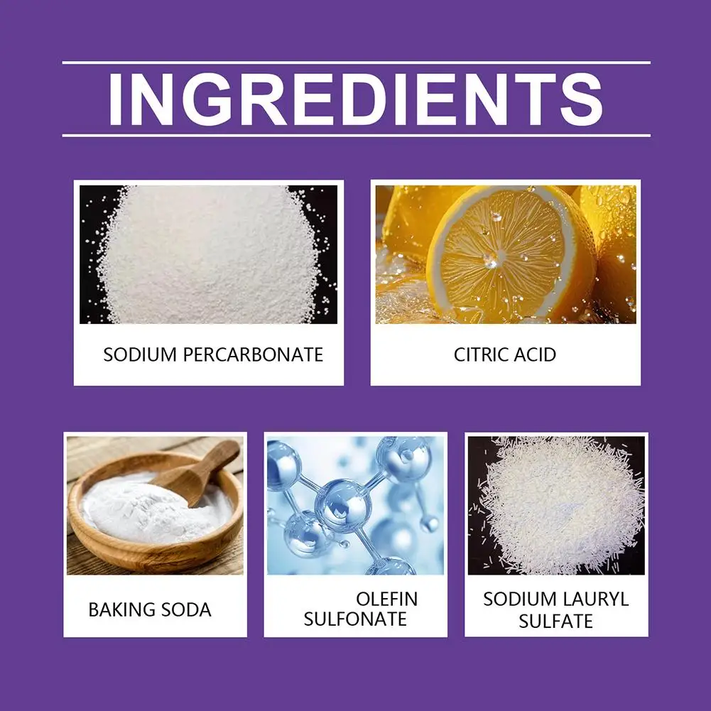 Our toilet decontamination cleaning powder is carefully formulated with sodium percarbonate, citric acid, and baking soda. It is specially designed to help remove the odor of the toilet. It is extremely convenient to use: scoop 1 tablespoon of powder and powder into the toilet. Let it stay for a while to dissolve stubborn stains and dirt. And it has deep penetration and powerful decontamination ability, making your toilet look brand new. It can easily remove dirt, including stains, grease and water stains, without leaving any traces.